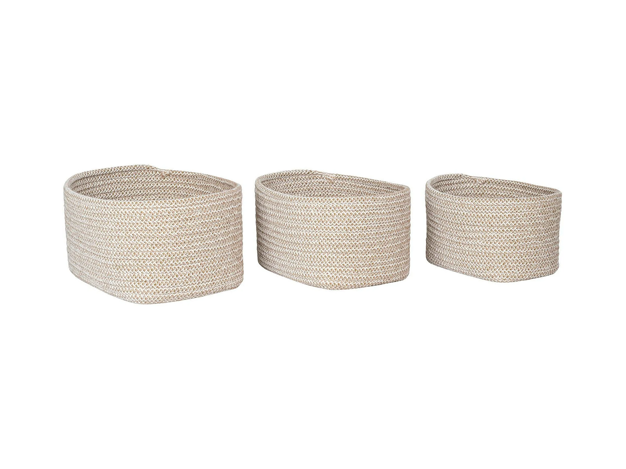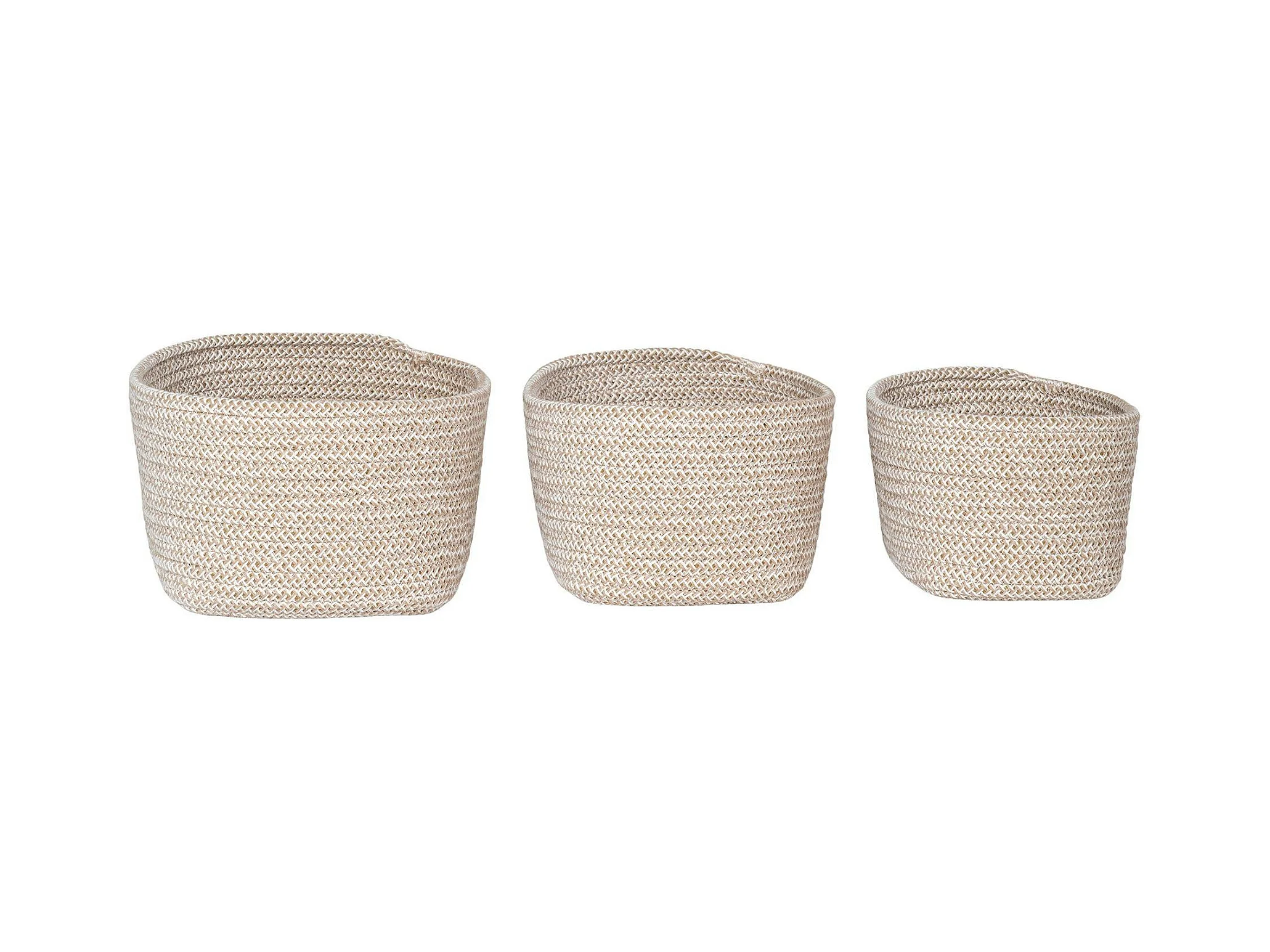 Panier de rangement en coton beige, tressage bicolore (lot de 3)