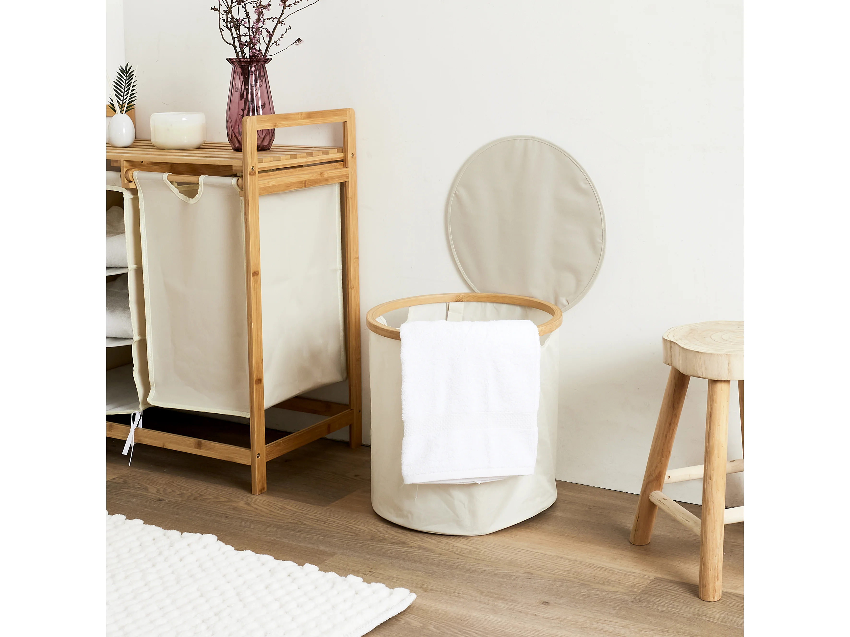 Panier De Rangement Rond Cerclage Bambou Beige