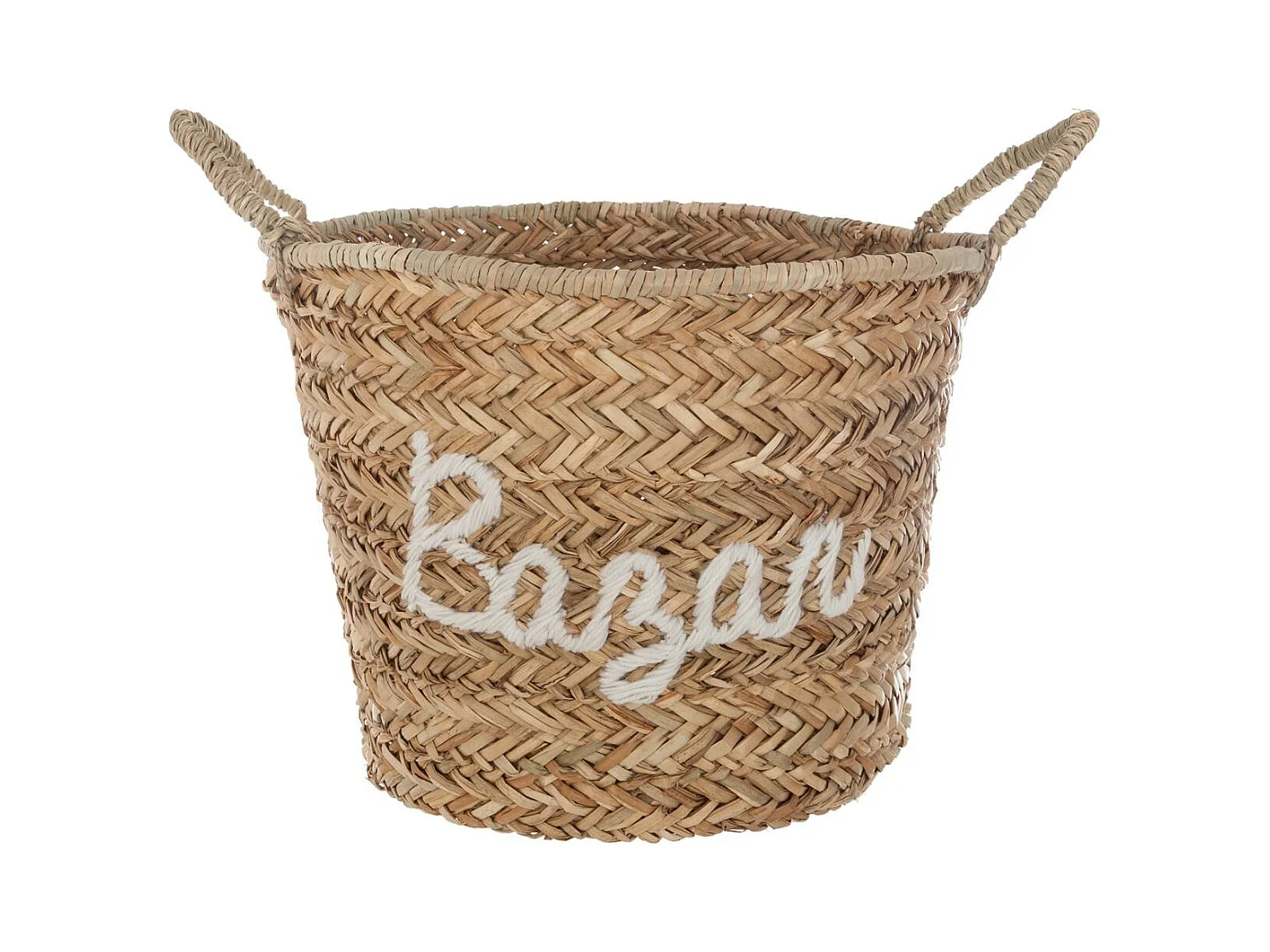 Panier en Osier Brodé "Bazar" 38cm Blanc