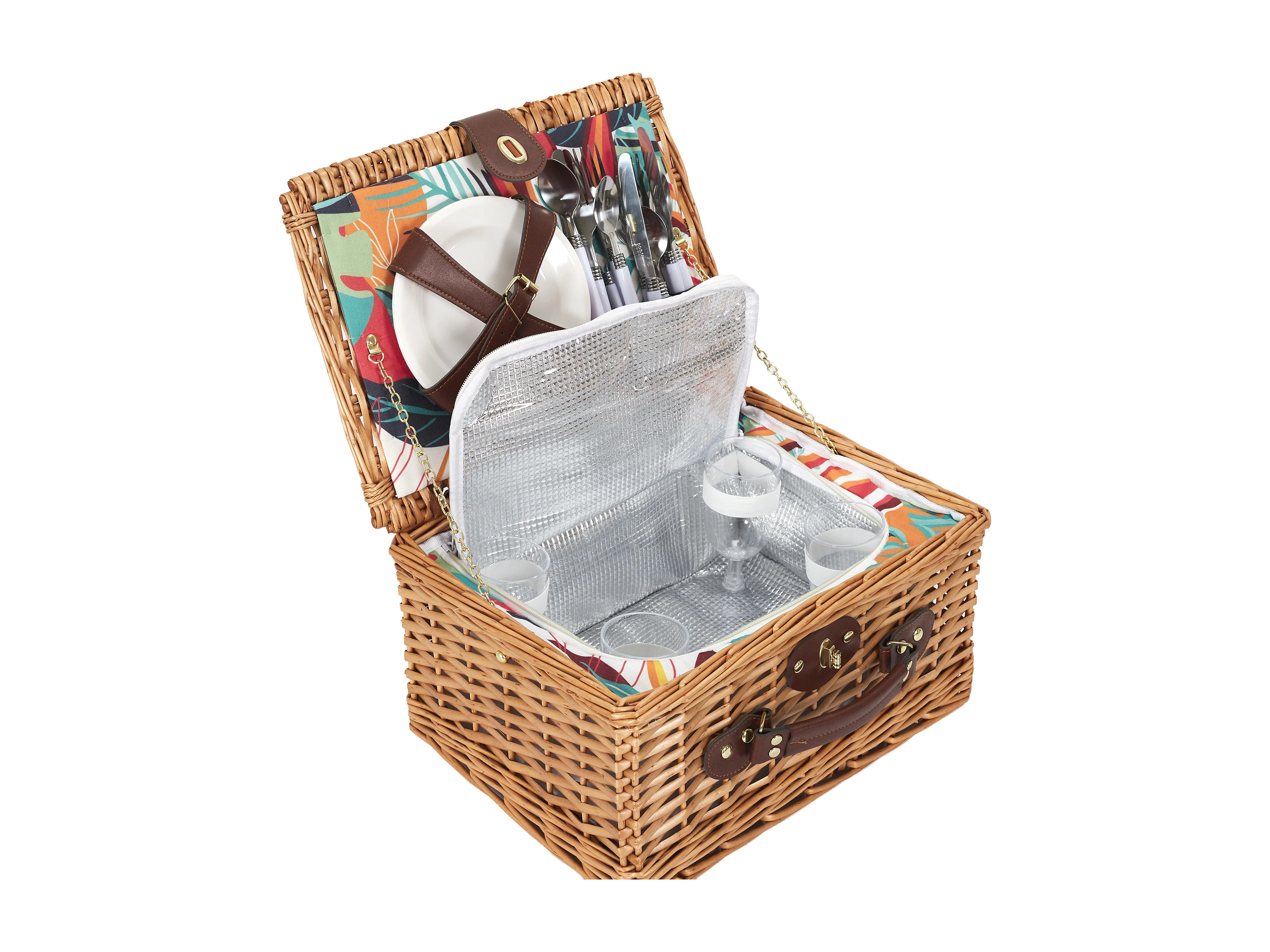 Panier Pique Nique 4 Personnes Paradis Exotique Rouge, Marron, Blanc