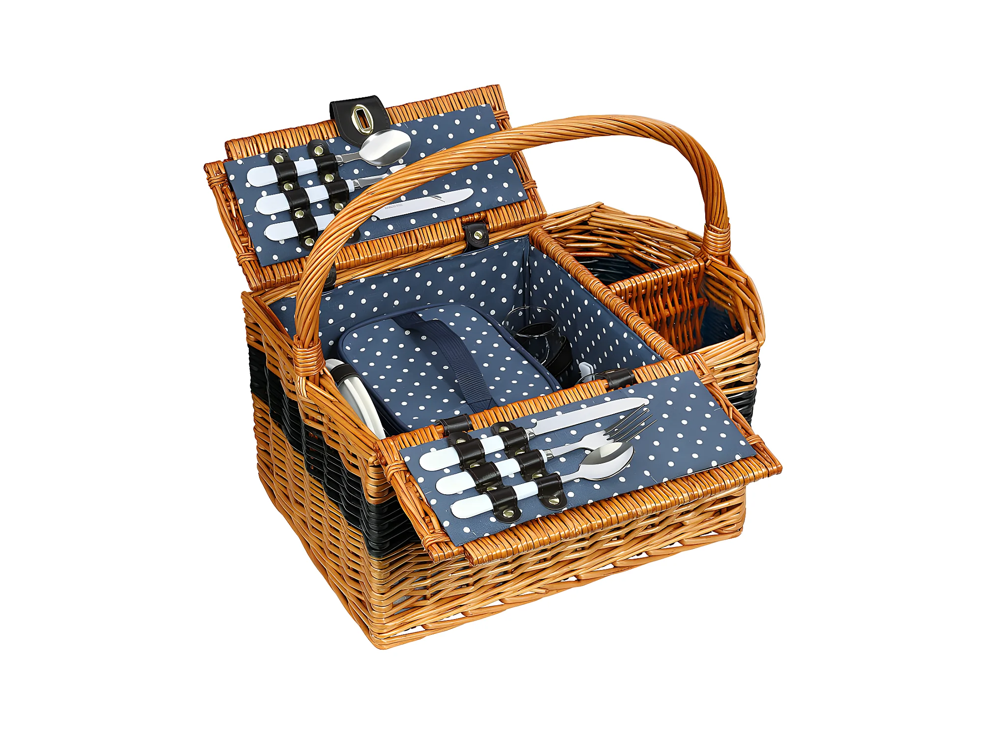 Panier pique-nique rond en osier clair 2 couvert Cerise
