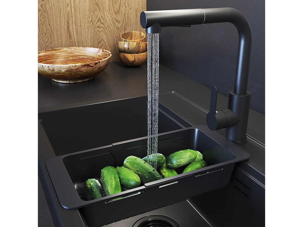 PANIER PLIANT PLASTIQUE NOIR ÉGOUTTOIR D'ÉVIER PASSOIRE UNIVERSELLE
