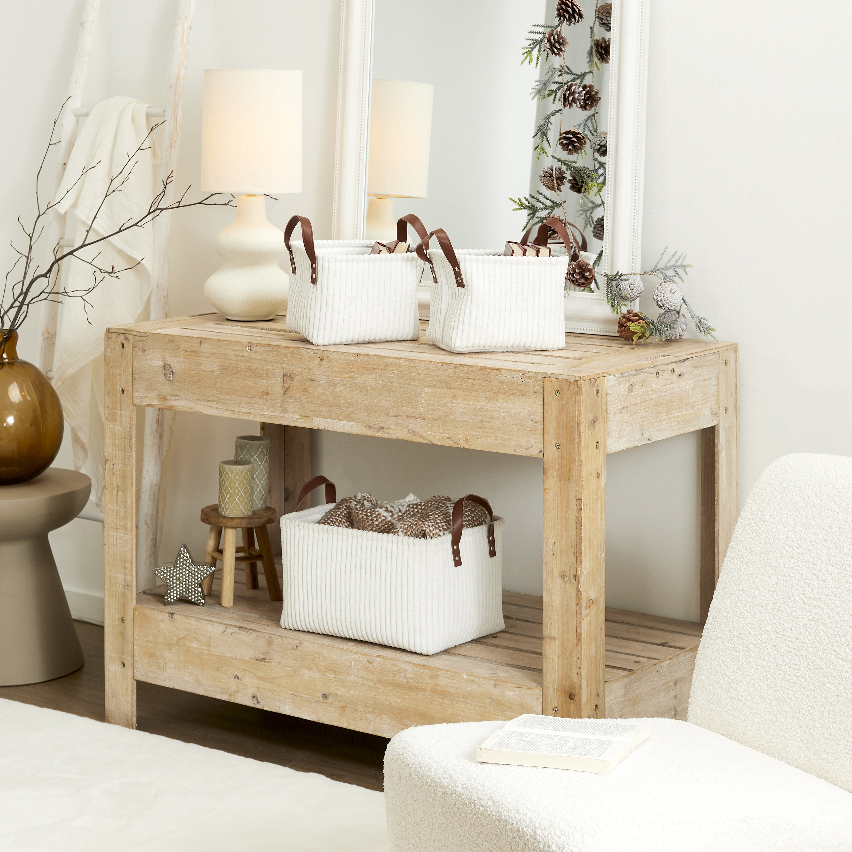 Panier Rangement Blanc X3 H20cm Blanc