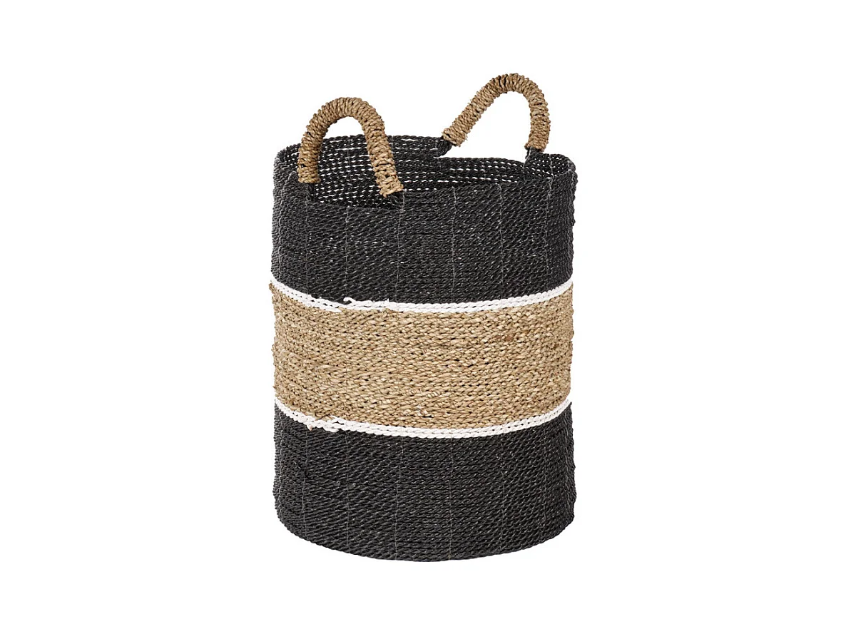 Panier rond D. 34 cm en jonc de mer et raphia - BOGO