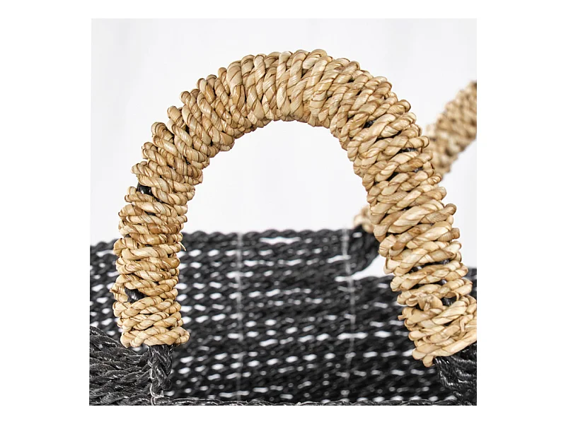 Set 3 paniers carrés en corde de coton tressée gris avec anses - LOV