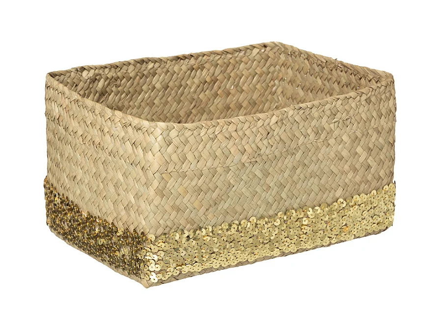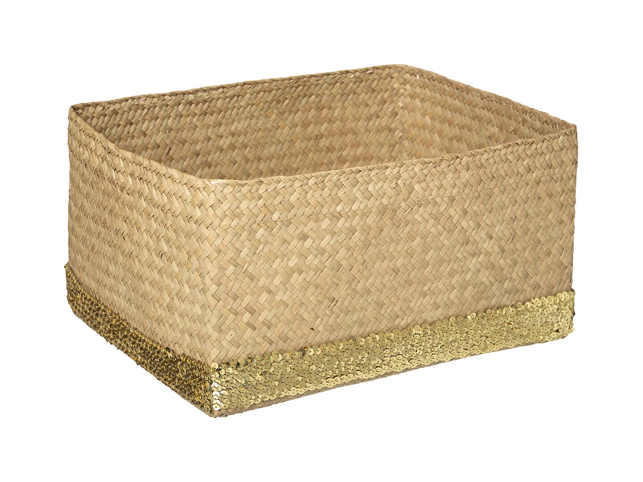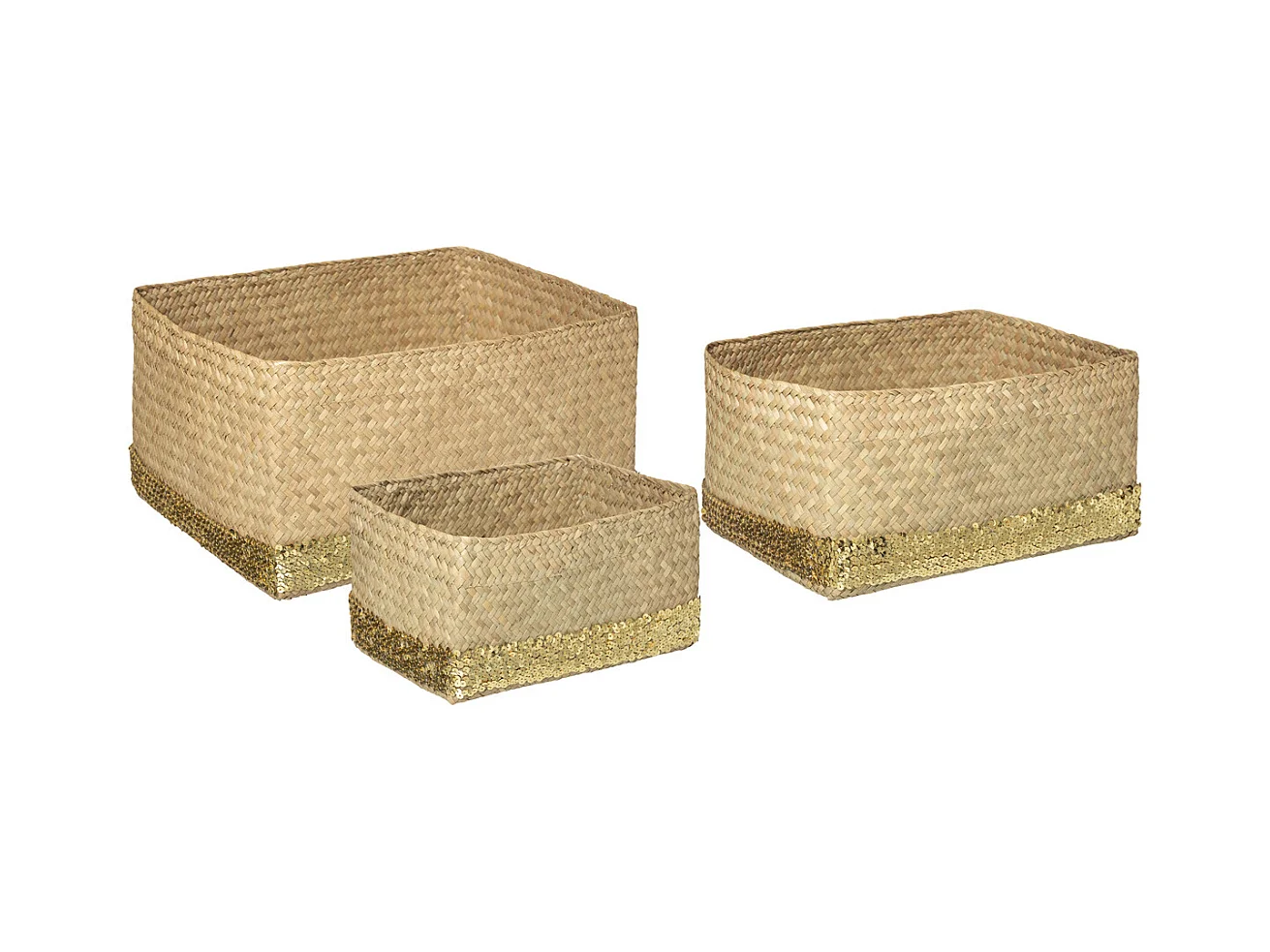 Lot de 3 Paniers Déco "Sequins" 40cm Naturel & Or