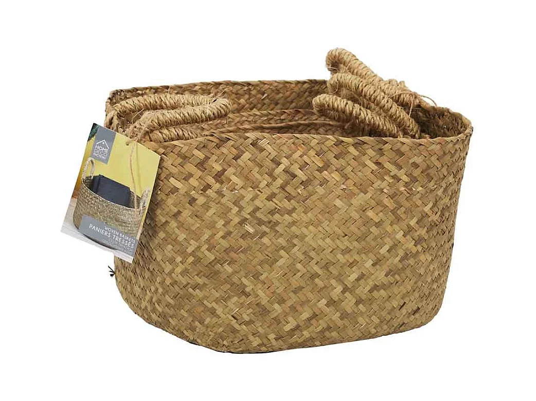 Set de 3 paniers rectangles avec poignées en jonc de mer