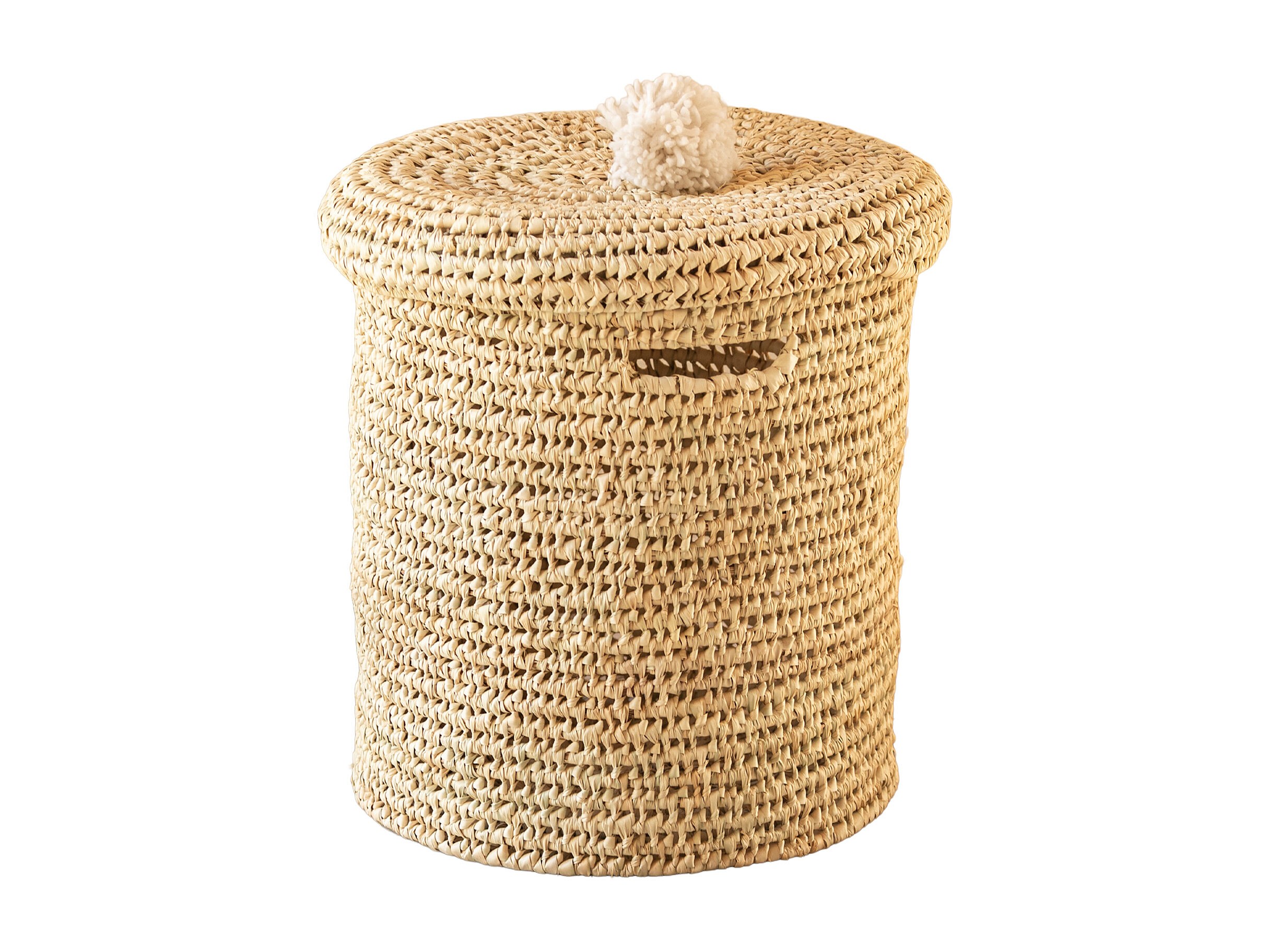 Panière a linge ajourée couvercle pompon