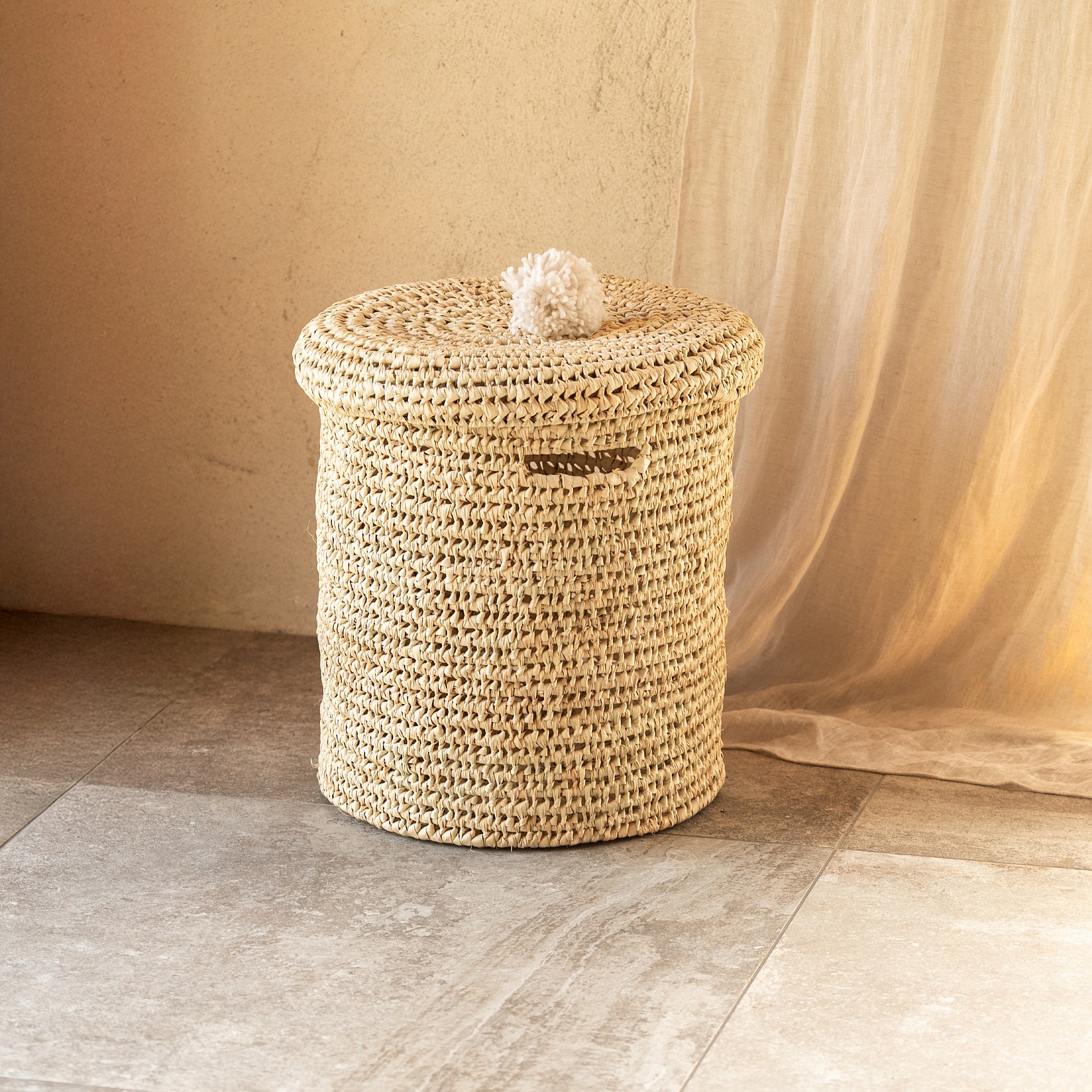 Panier à linge en fibres naturelles et laine