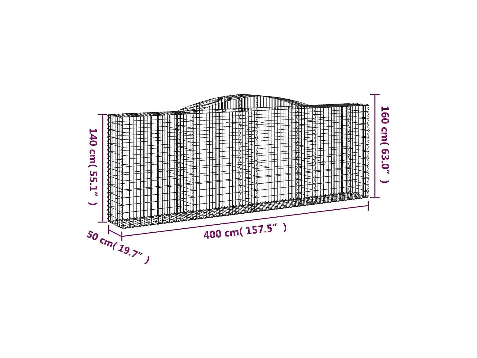Paniers à gabions arqués 10 pcs 400x50x140-160 Fer galvanisé