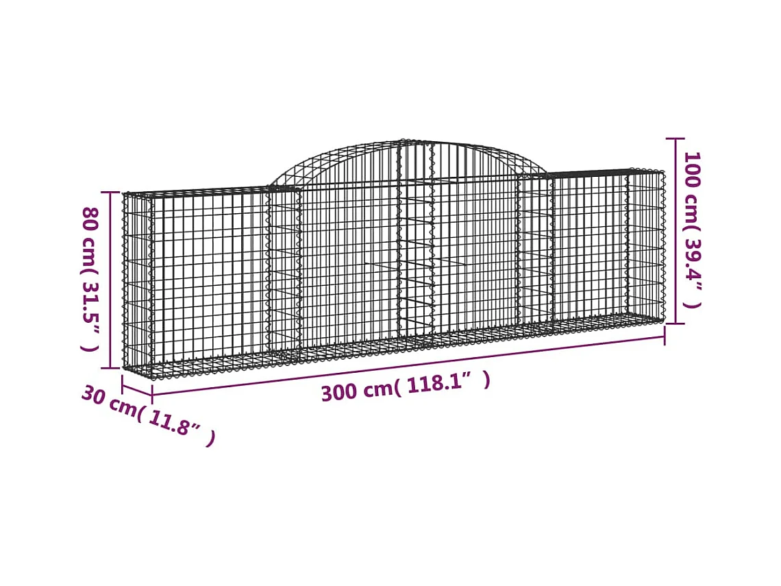Paniers à gabions arqués 15 pcs 300x30x80-100 fer galvanisé