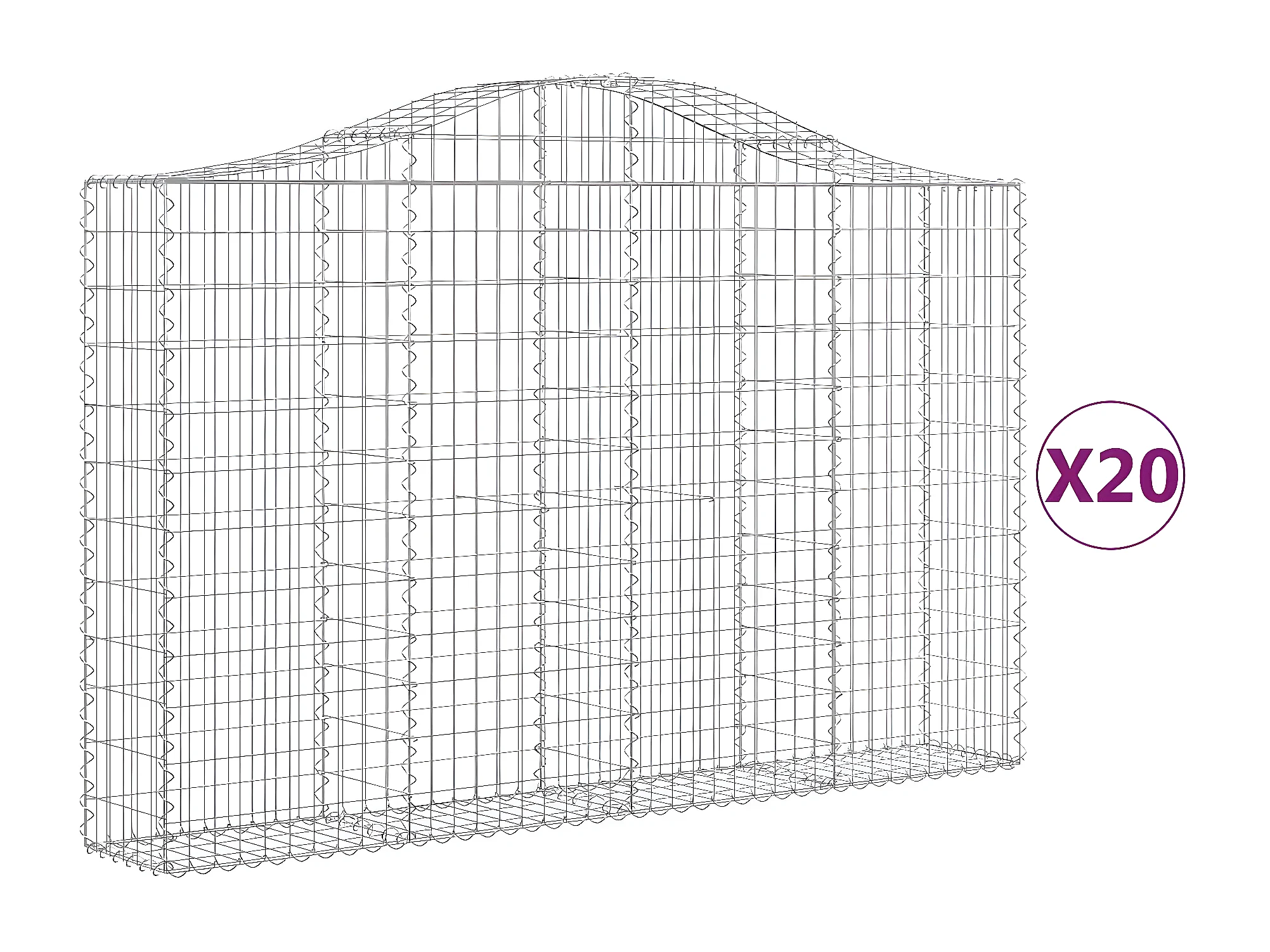 Paniers à gabions arqués 20 pièces 200x30x120/140 cm Fer galvanisé