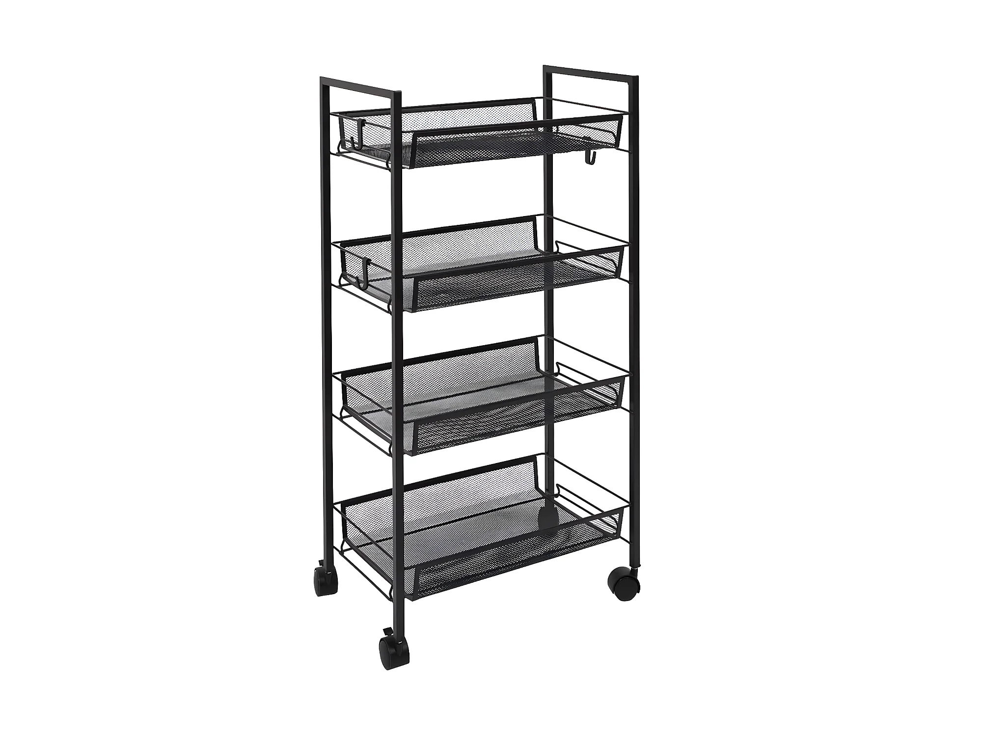 PANIL - Desserte à Roulettes Métallique Noire 4 Niveaux