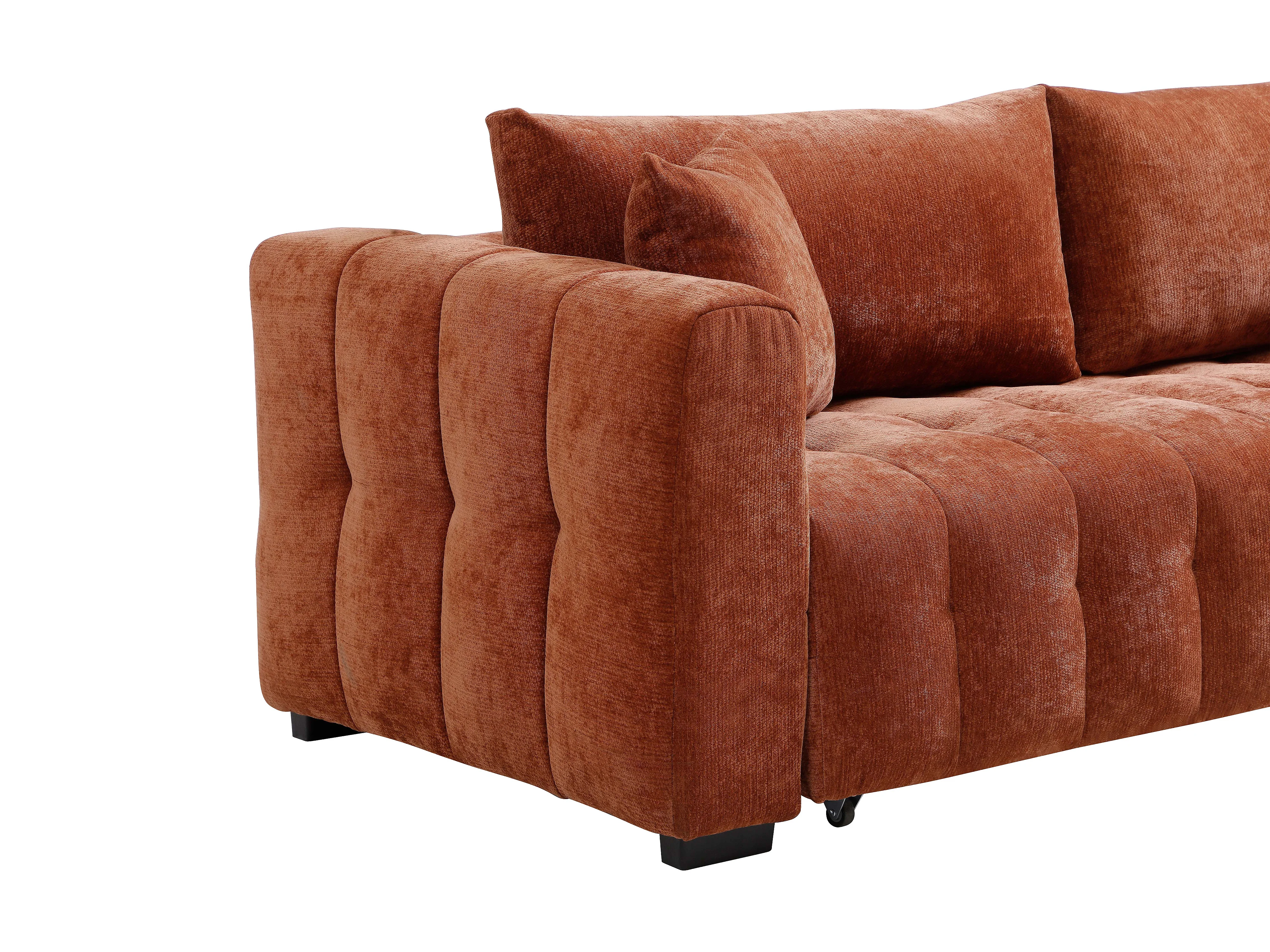 Canapé 3 places convertible en tissu texturé terracotta PANILO