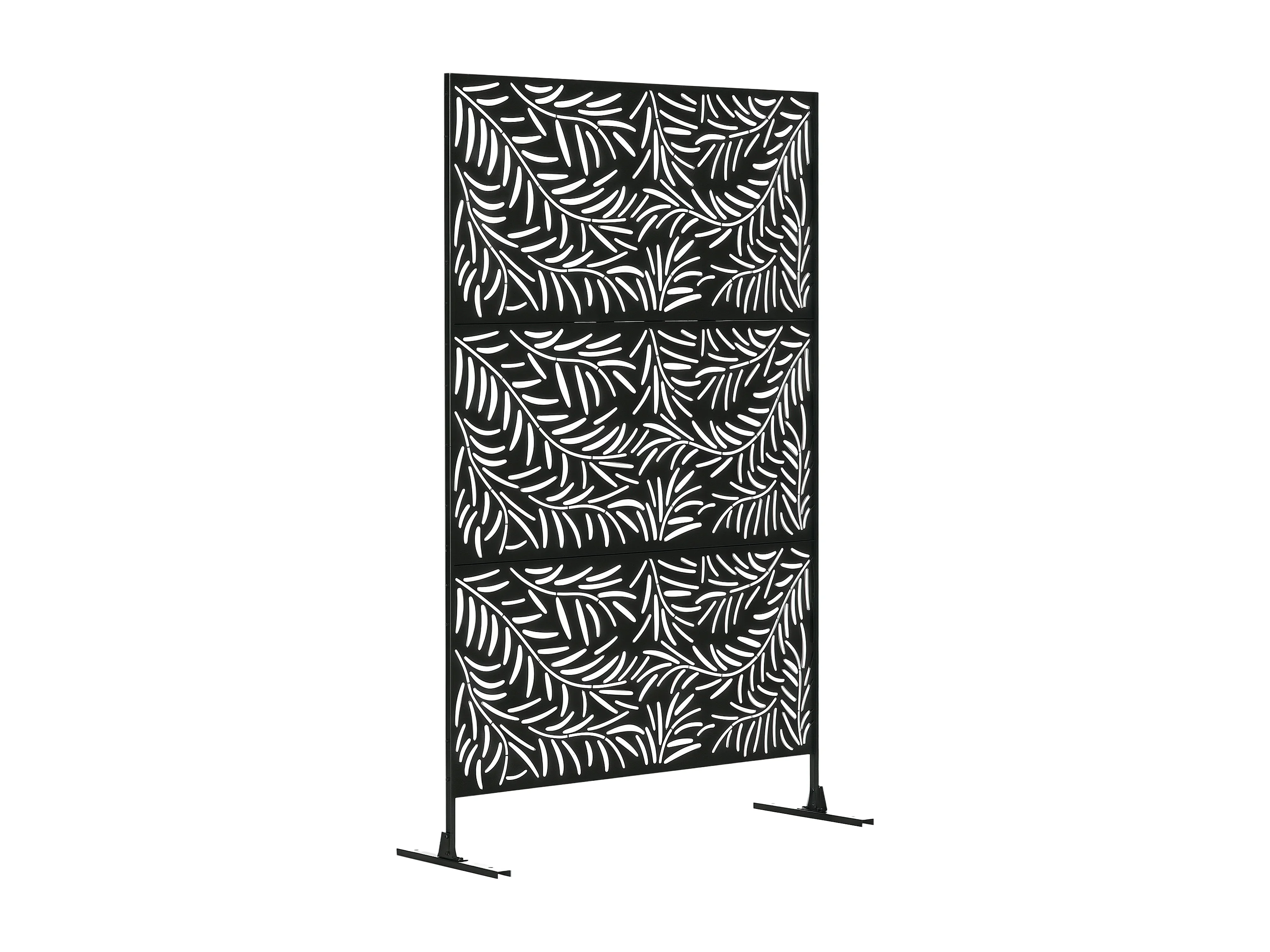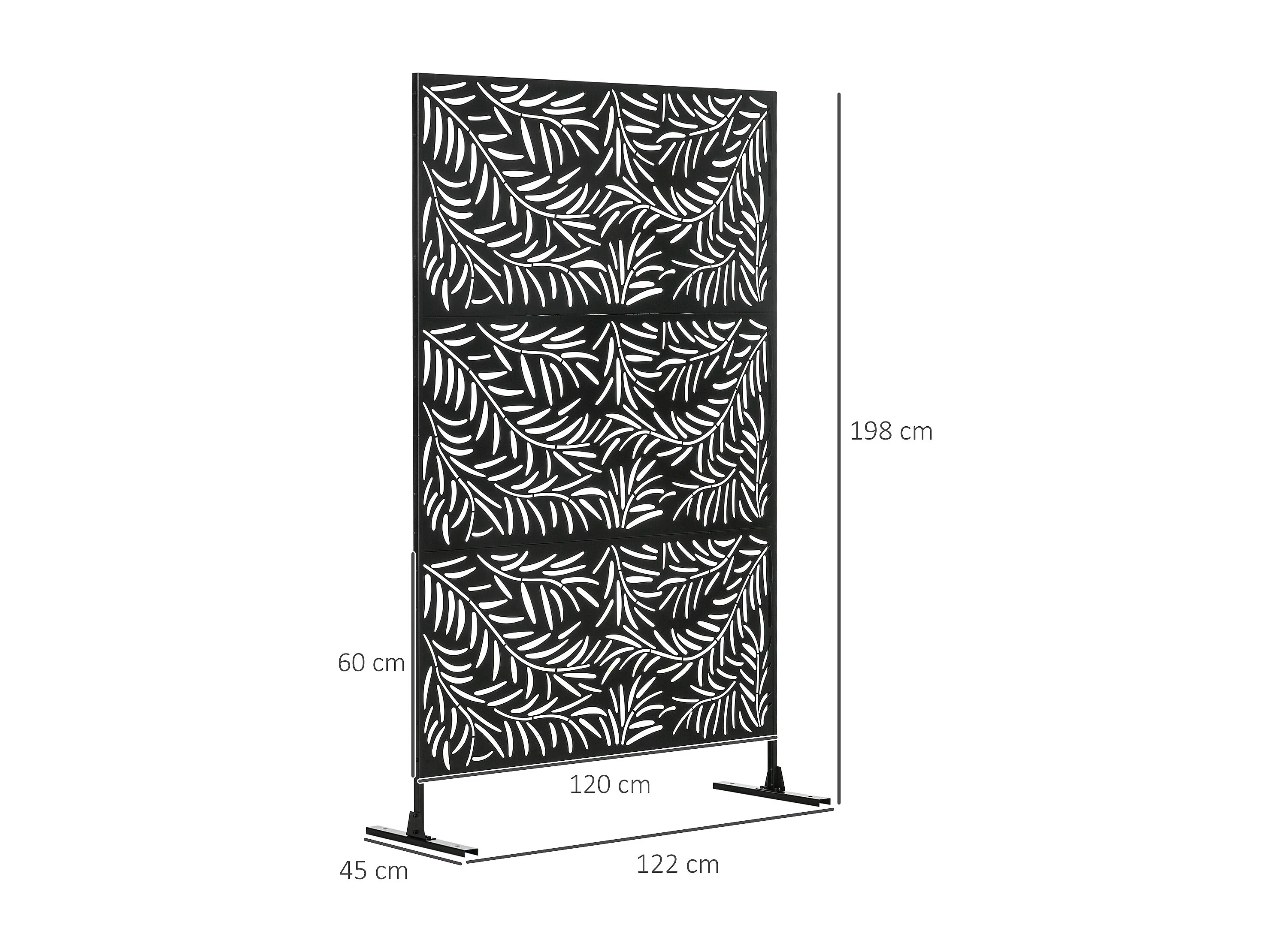 Panneau brise vue décoratif paravent extérieur motif végétal feuilles saule 122 x 198 cm acier thermolaqué noir
