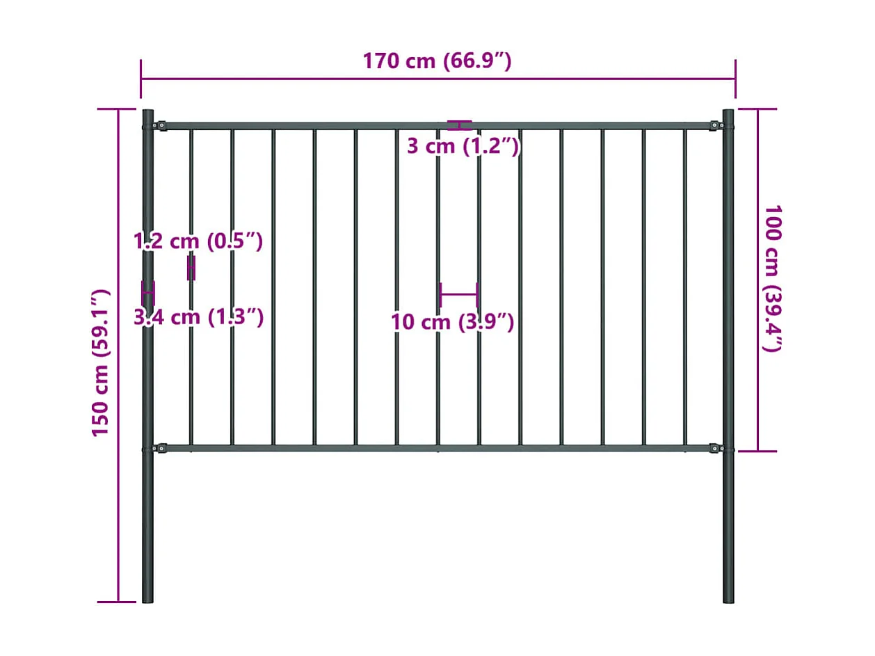 Panneau clôture et poteaux acier enduit de poudre anthracite FR191089