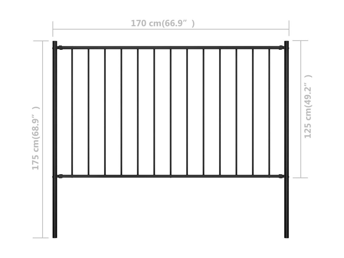 Panneau clôture et poteaux Acier enduit poudre 1,7x1,25 m Noir