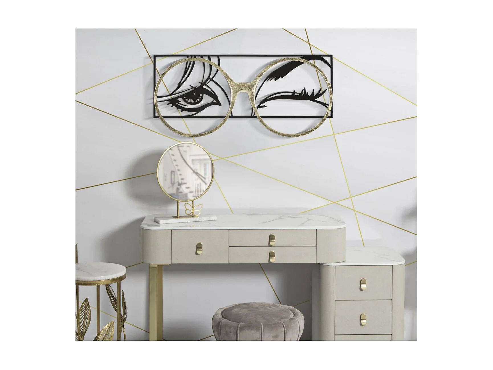 Décoration Murale Encadrée en Métal "Eyewear" 89cm Noir & Or