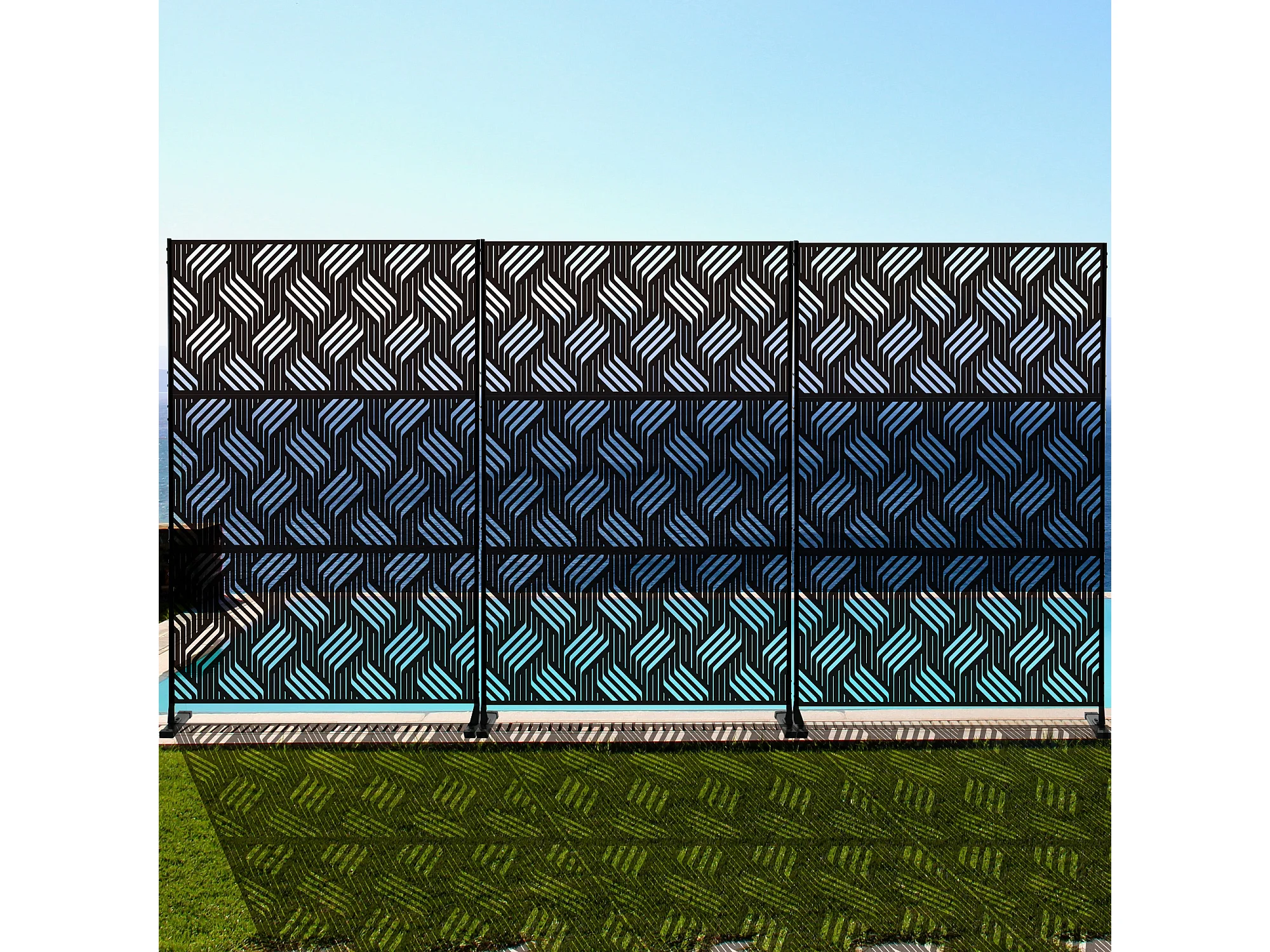 Panneau décoratif en métal, cloison séparatrice d’extérieur ou d’intérieur, panneau brise-vue, paravent en acier, design moderne - Noir/Motif