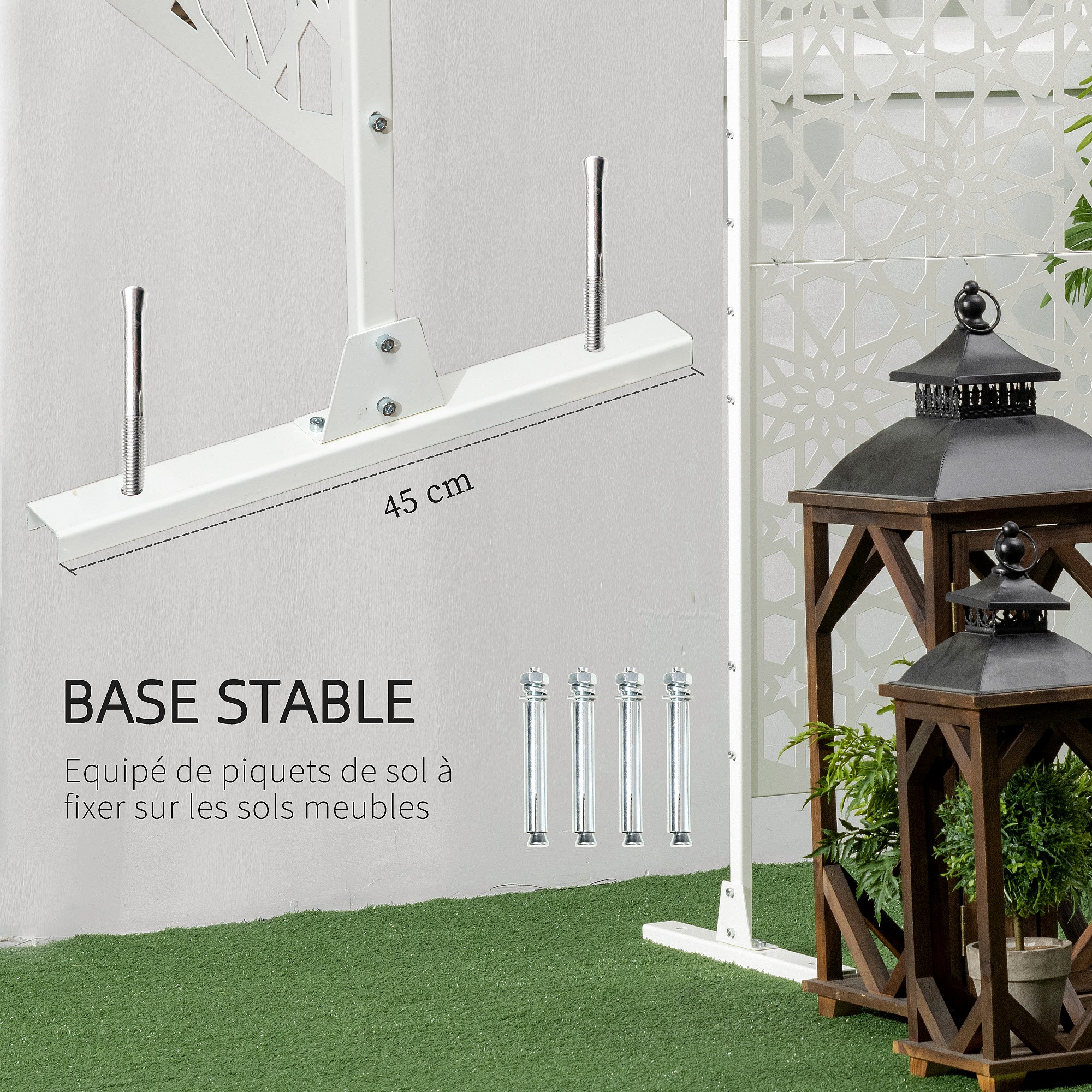 Panneau décoratif extérieur métal - brise vue motif étoiles - visserie incluse - dim. 92L x 45l x 198H cm - acier thermolaqué blanc