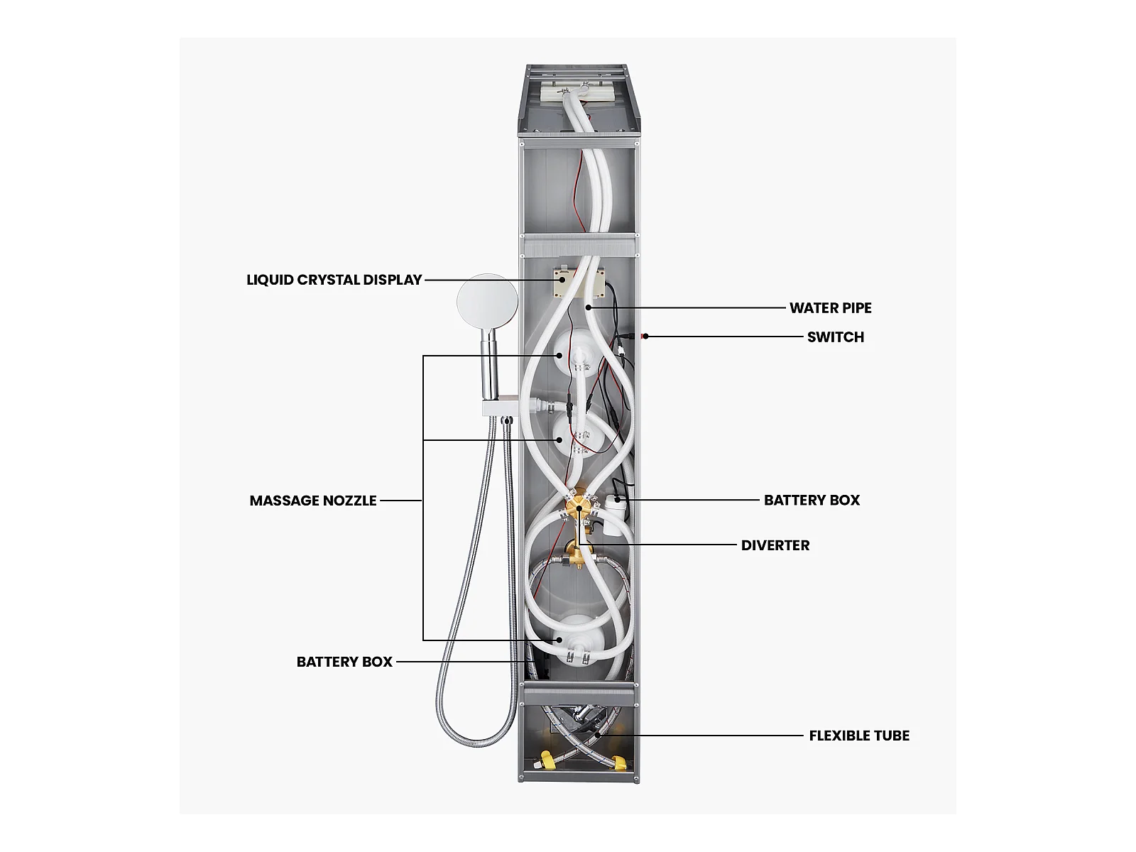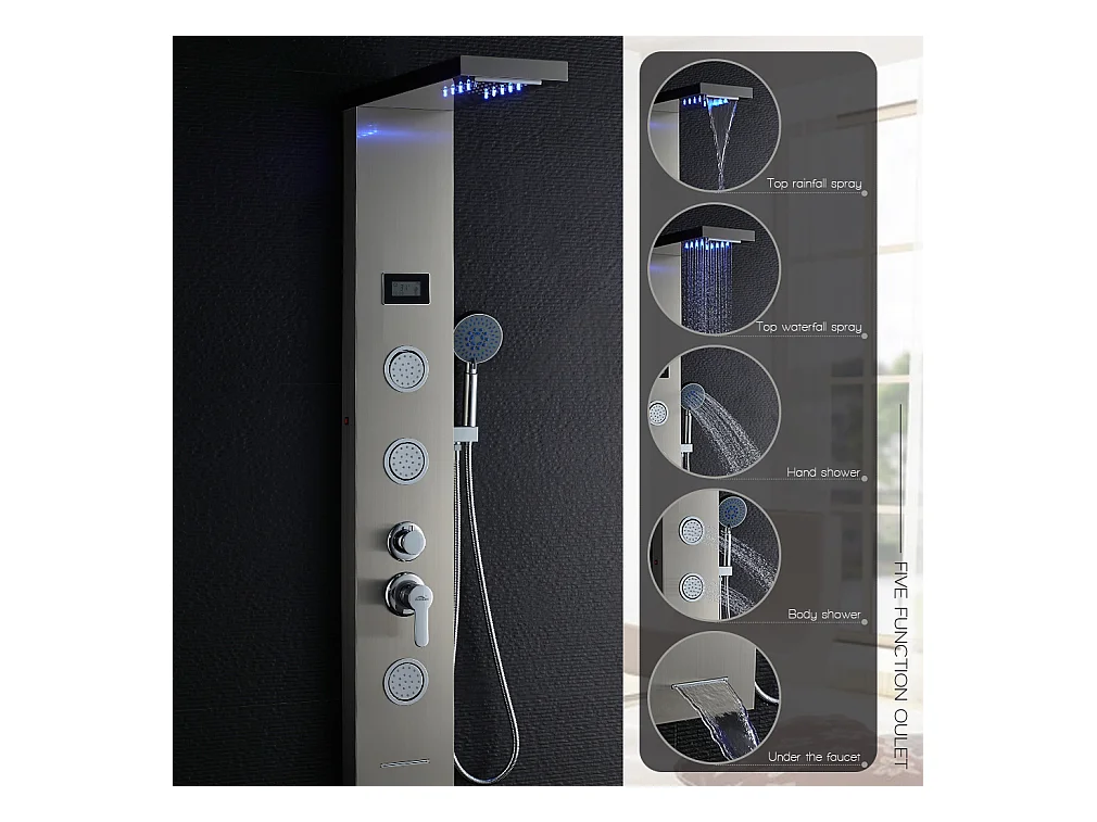 Panneau Douche LED LCD Indicateur de température Colonne Douche Hydromassante Panneau Douche en Acier Inox Brossé avec 3 Jets de Massage,EU Modèle