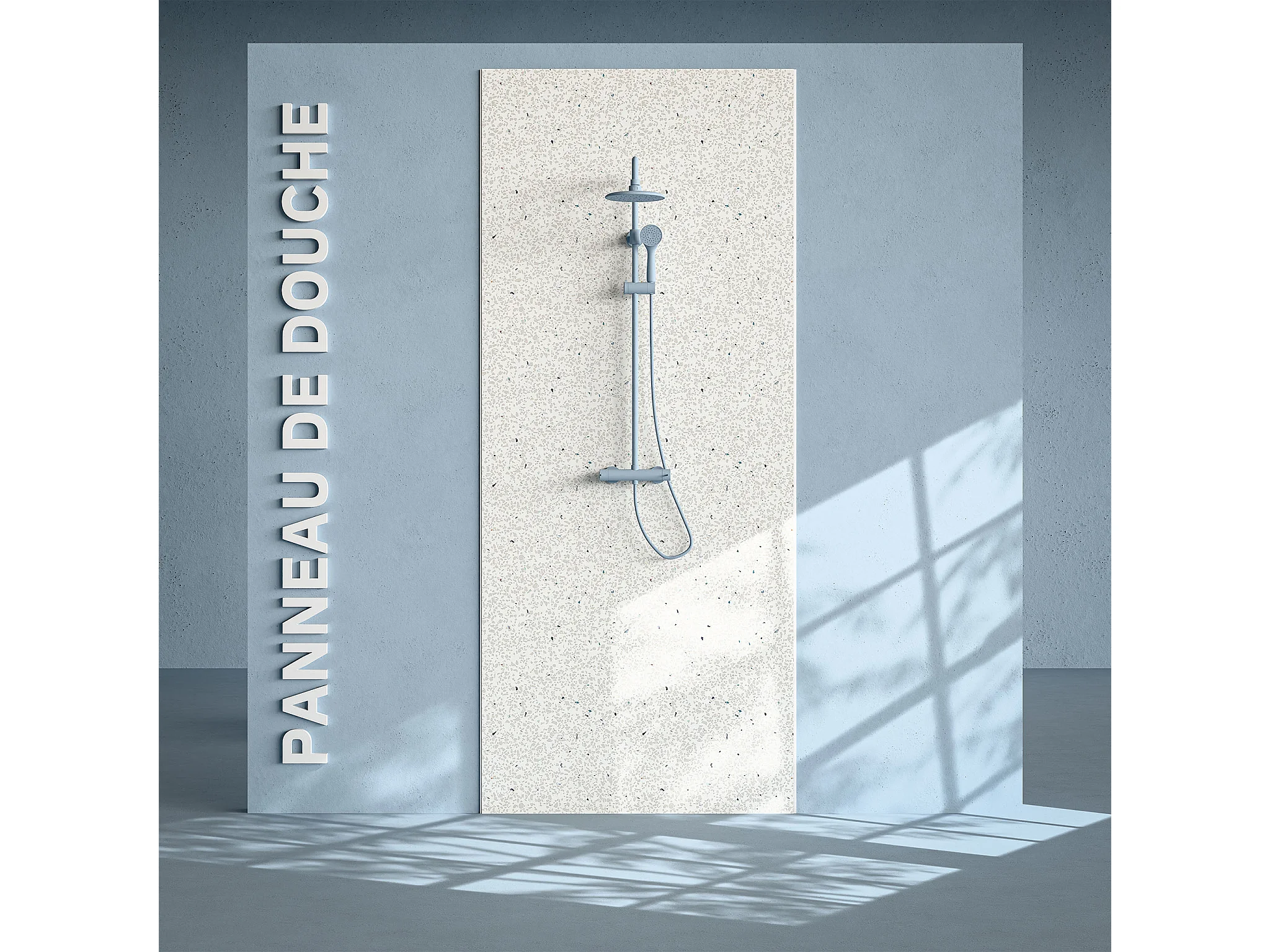 Panneau Douche PVC Terrazzo Blanc - L. 240 x l. 100 x ép. 1 cm
