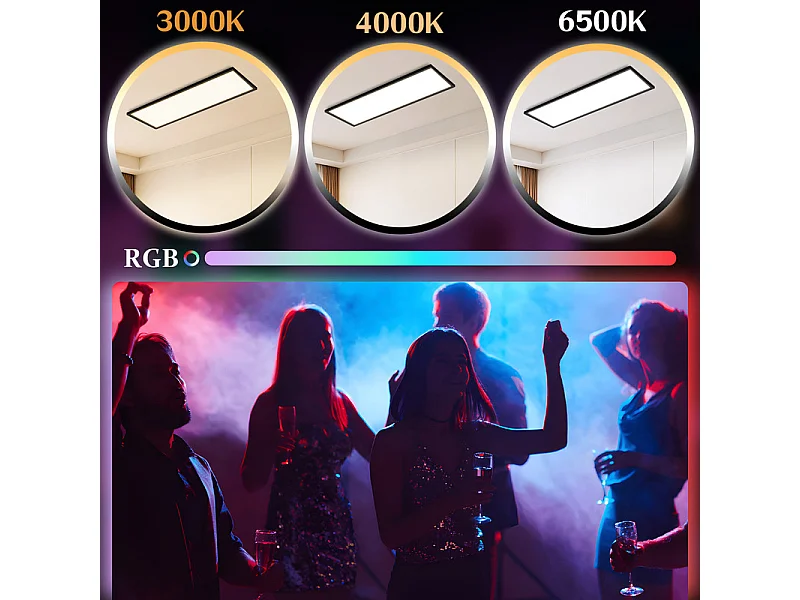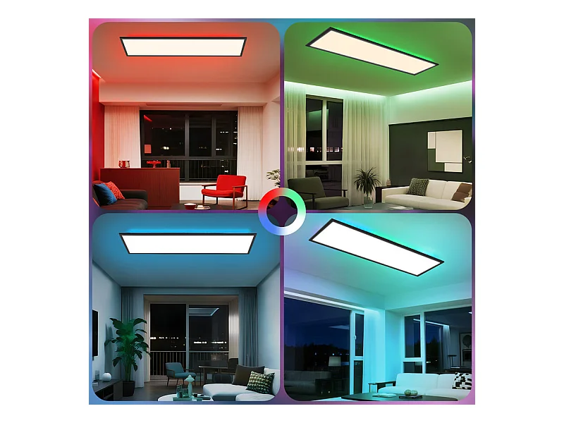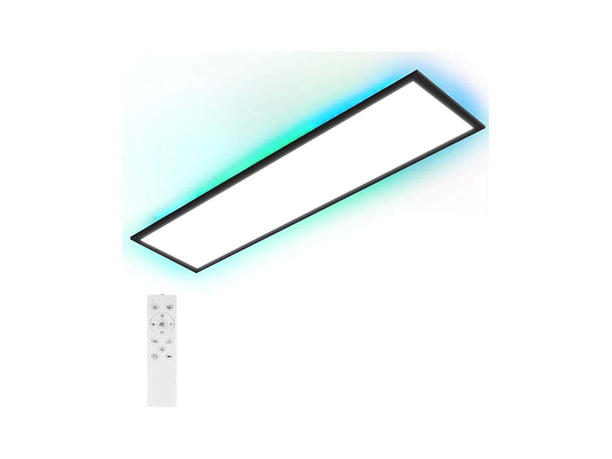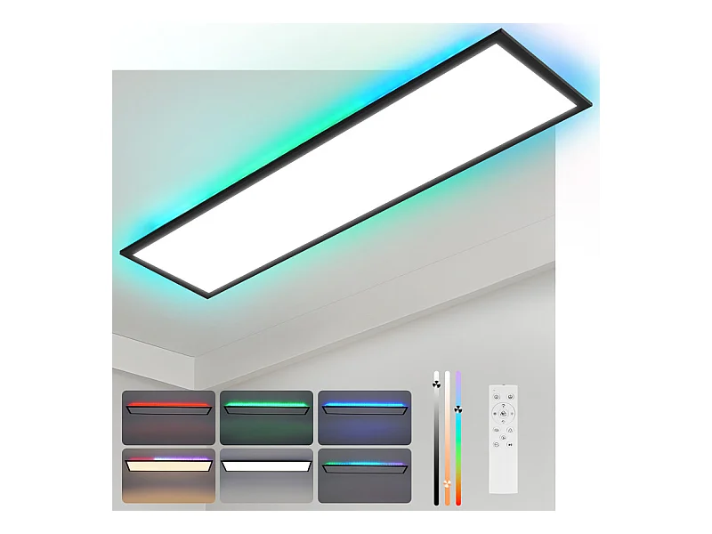 Panneau LED NETTLIFE 120 x 30 cm, intensité variable, plafonnier plat et long, couleur RVB, avec télécommande, 36 W, noir, rectangulaire