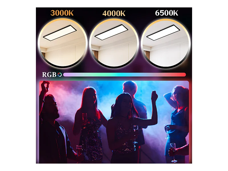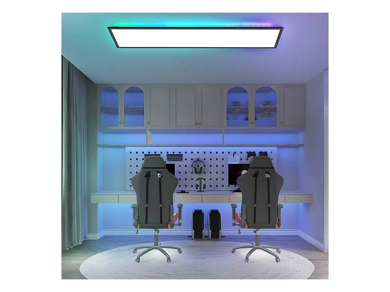 Panneau LED NETTLIFE 120 x 30 cm, intensité variable, long panneau de plafond RVB à changement de couleur avec télécommande 39 W, noir