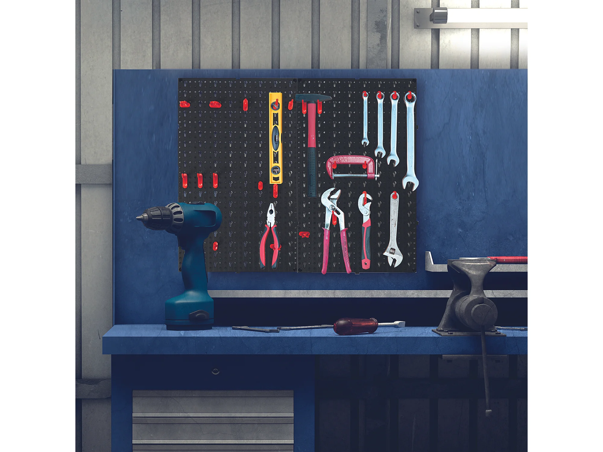Panneau Mural Rangement Outils 12 Accroches M12 Noir en Plastique