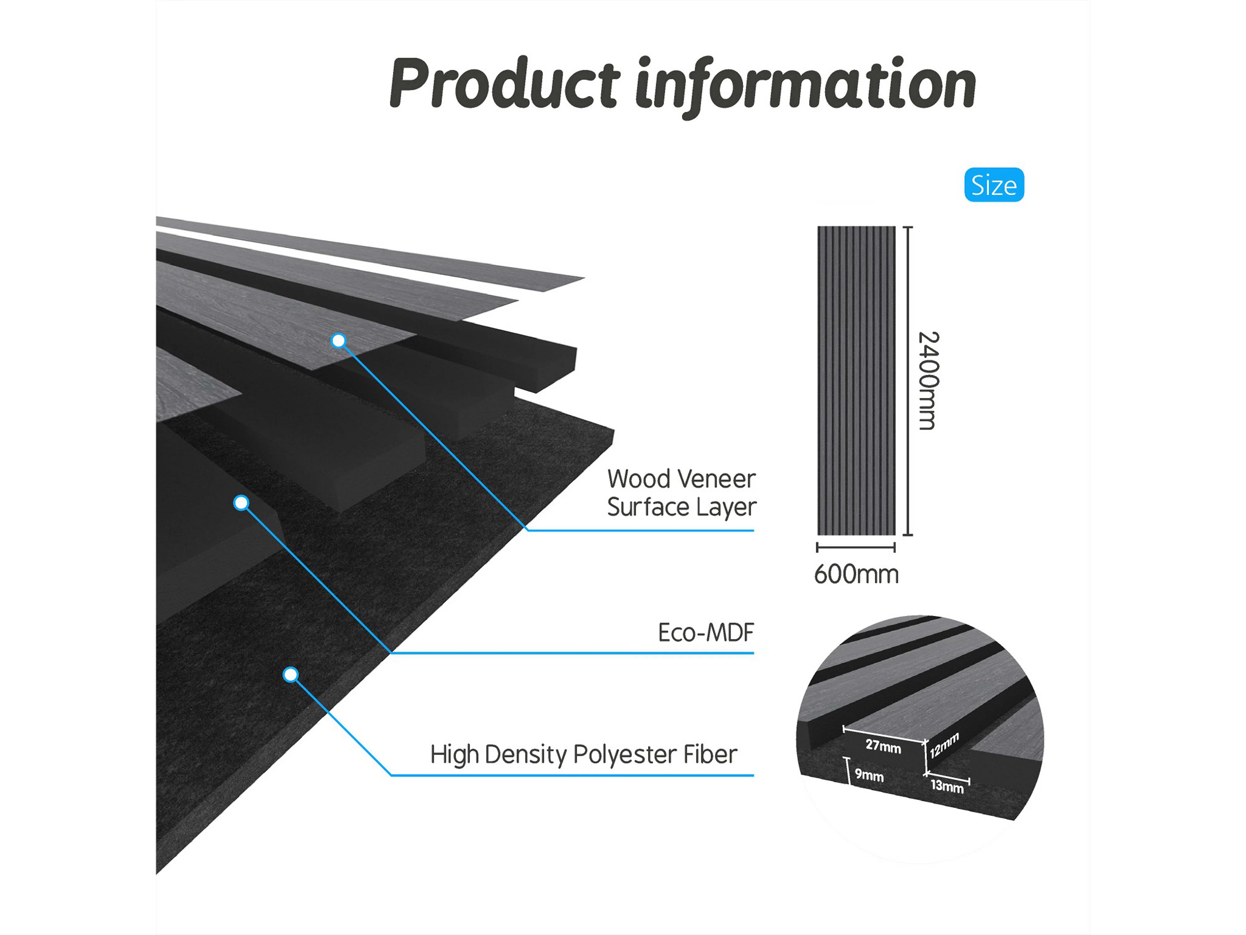 Panneaux décoratifs AICA, panneaux muraux en MDF imitation bois, lot de 3, 240 x 60 cm, chêne gris