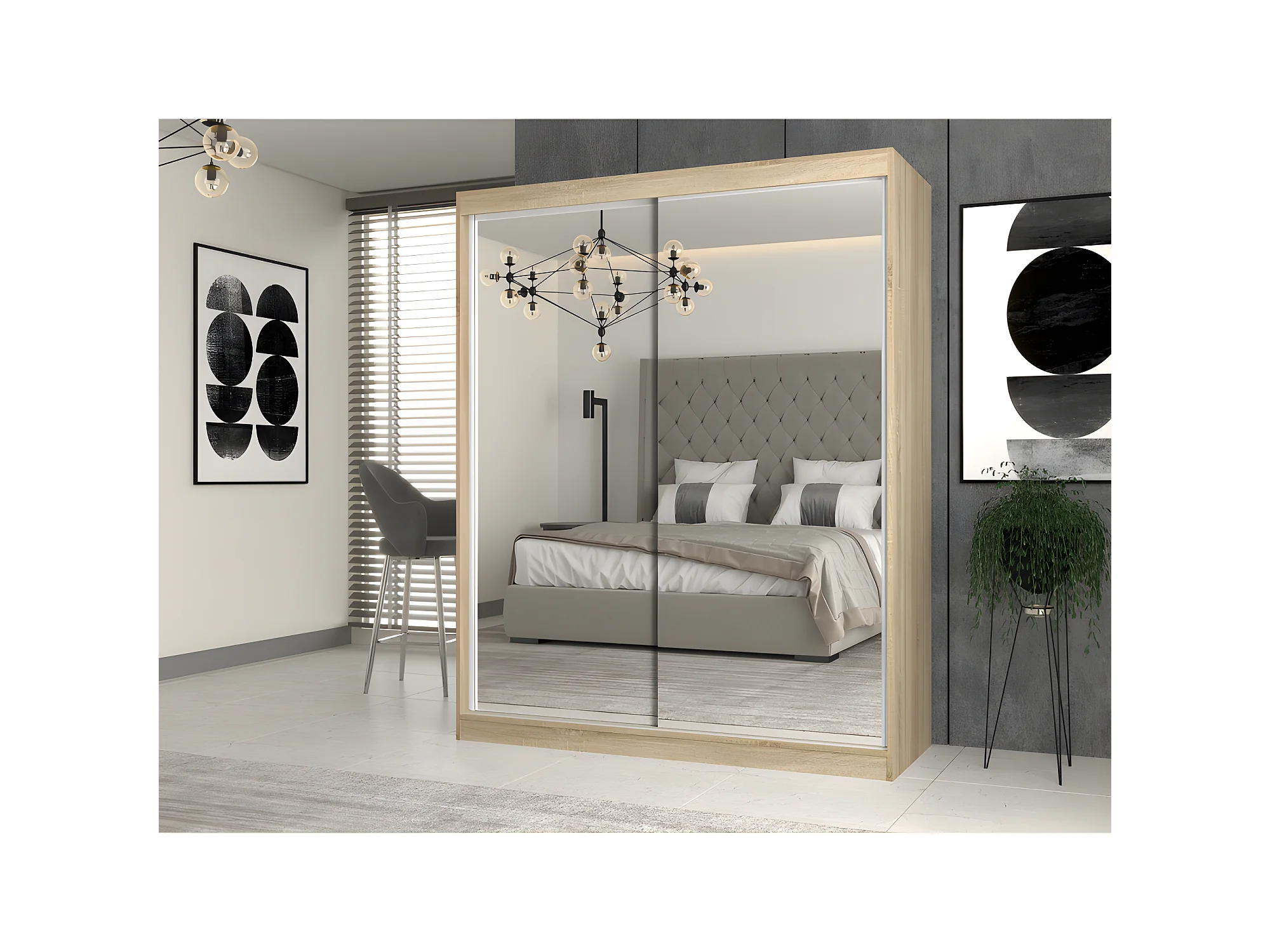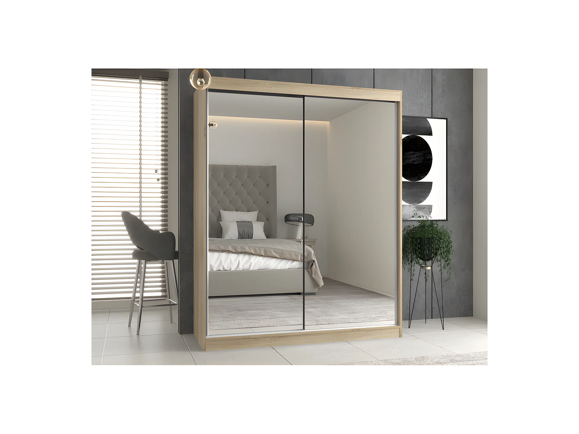 PAOLO - Armoire à 2 portes coulissantes - 2 miroirs - L. 160 cm - Dressing de chambre 2 portes
