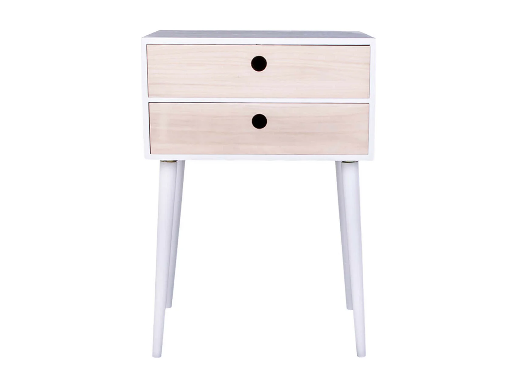 PAPAY - Chevet 2 Tiroirs Paulownia Blanc et Naturel