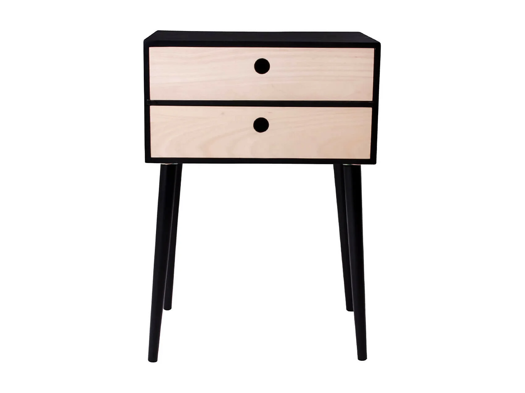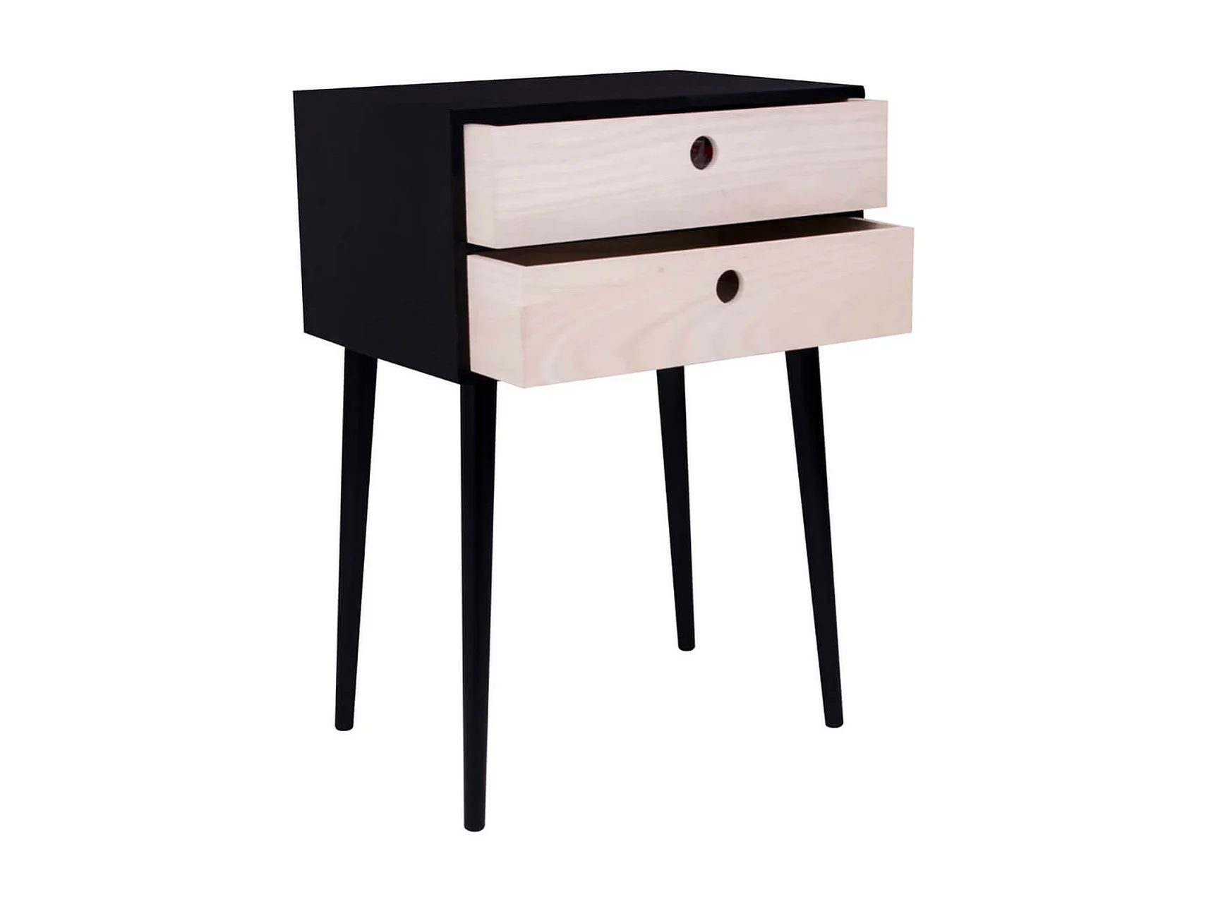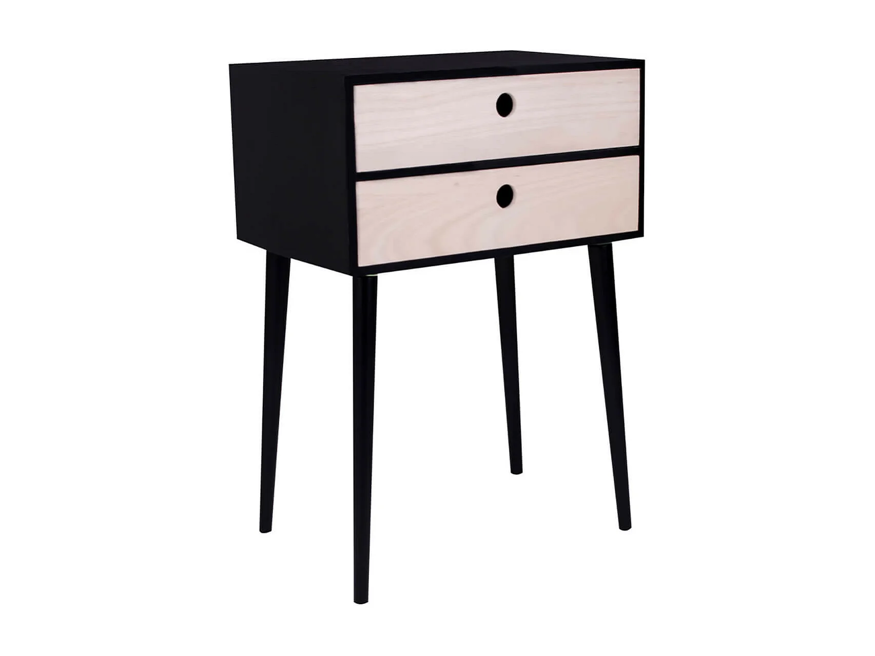 PAPAY - Chevet 2 Tiroirs Paulownia Noir et Naturel