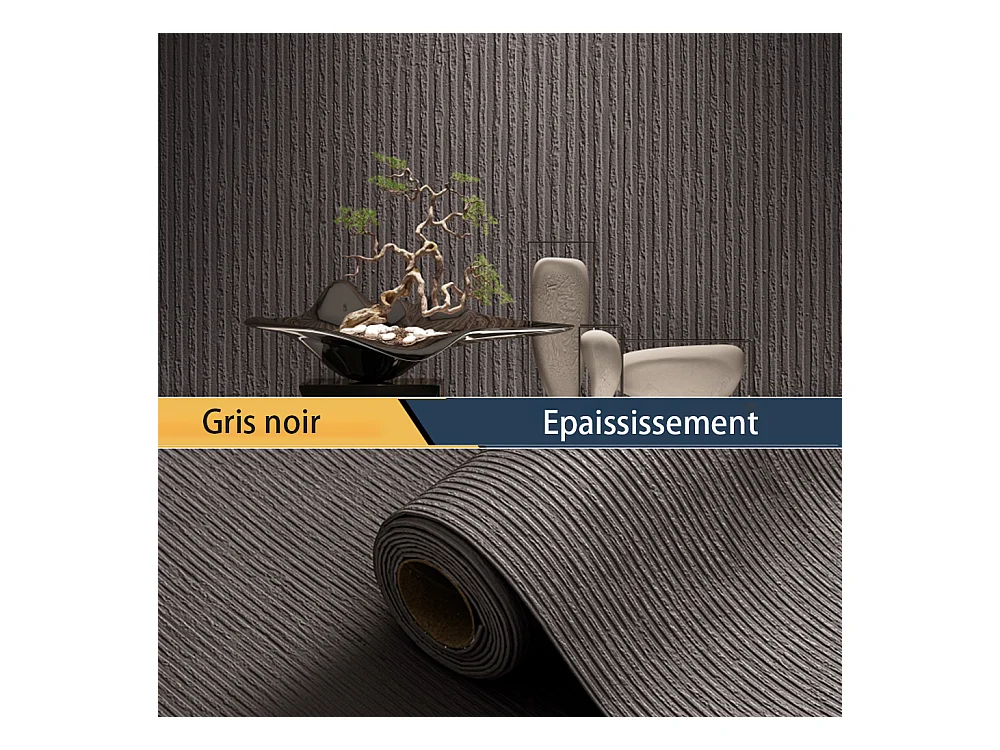 Papier peint 3D autocollant épais effet ciment noir gris, 60 cm x 2,8 m, style industriel, 1,68 m²
