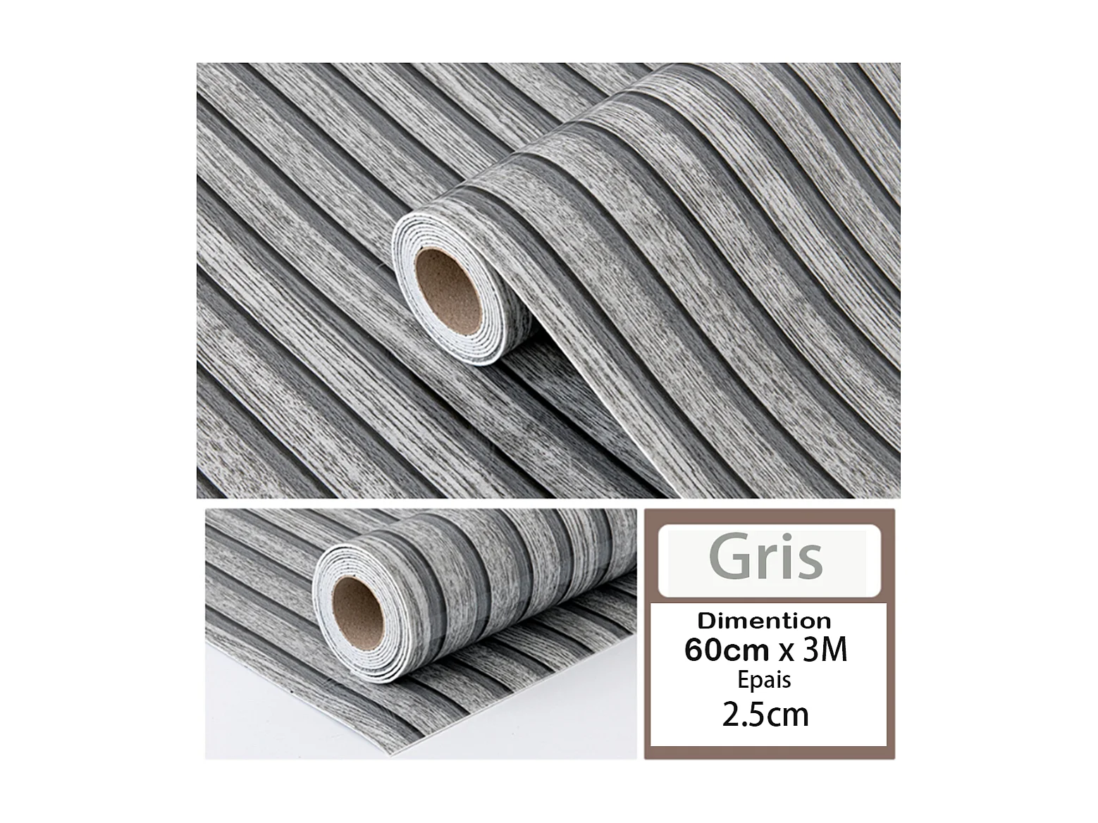 Papier peint 3D autocollant PVC 60 cm x 3 m, imitation bois gris, résistant à l'eau et à l'humidité