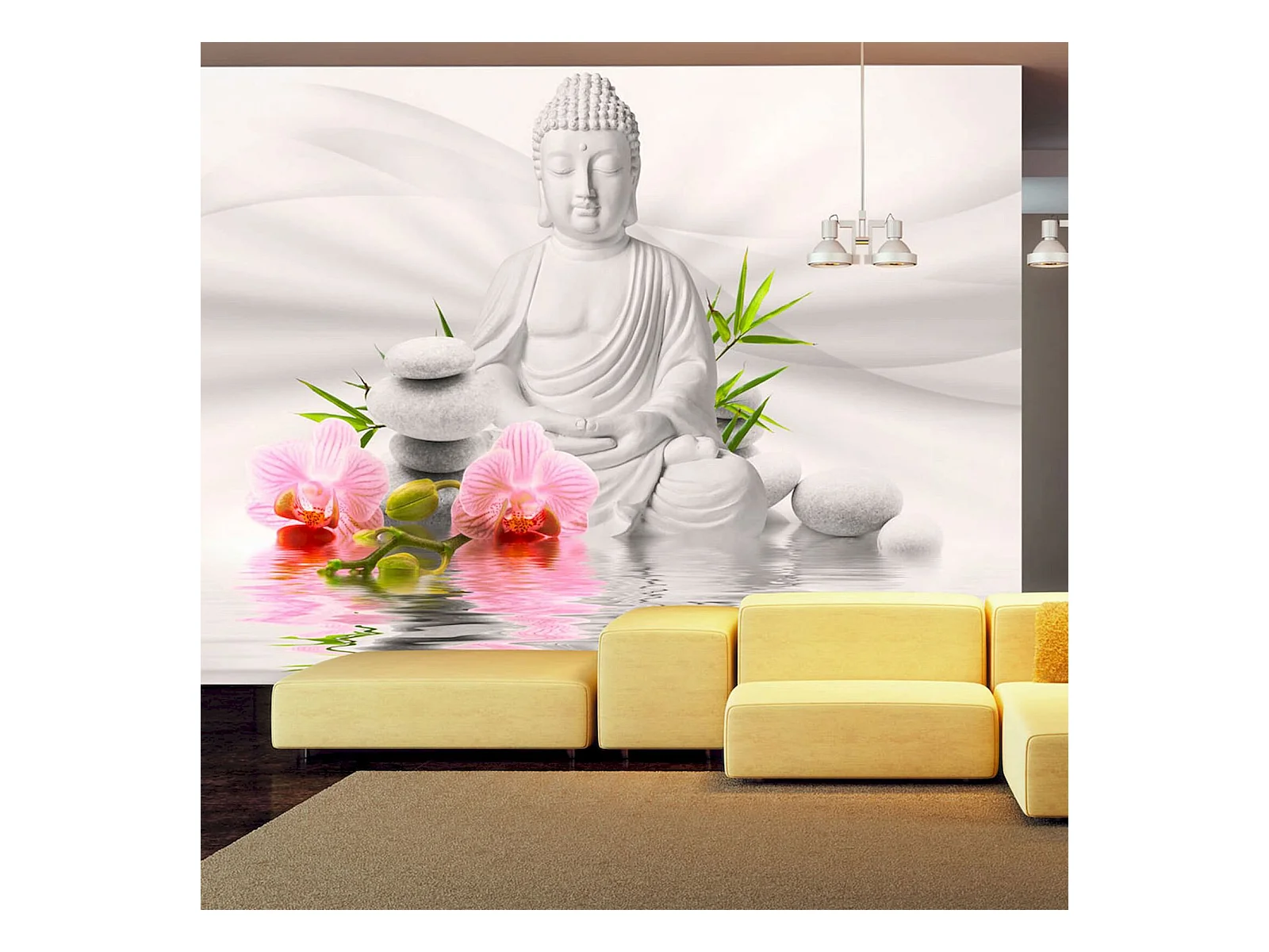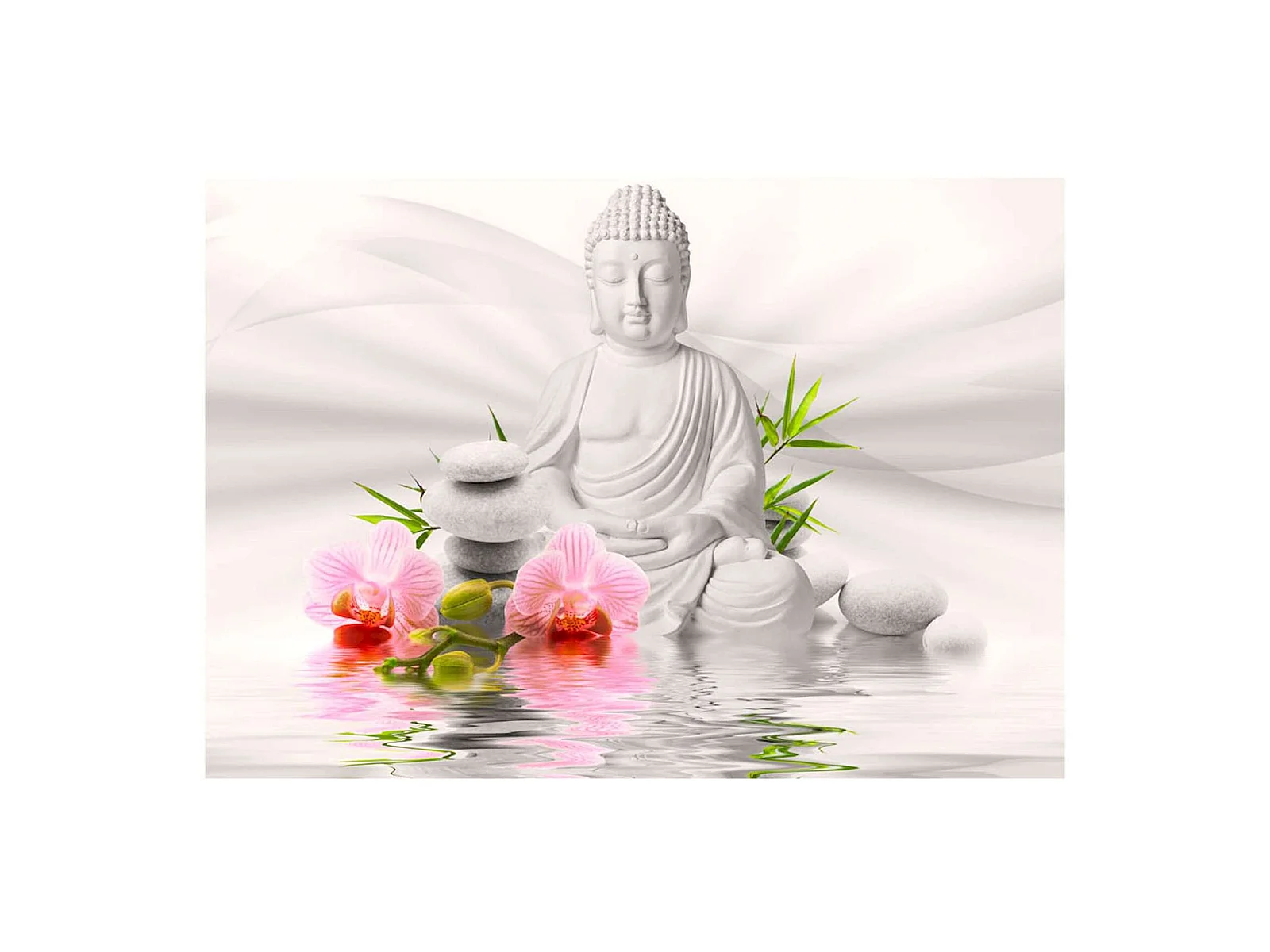 Papier peint adhésif Bouddha et orchidées - 147 x 105 cm
