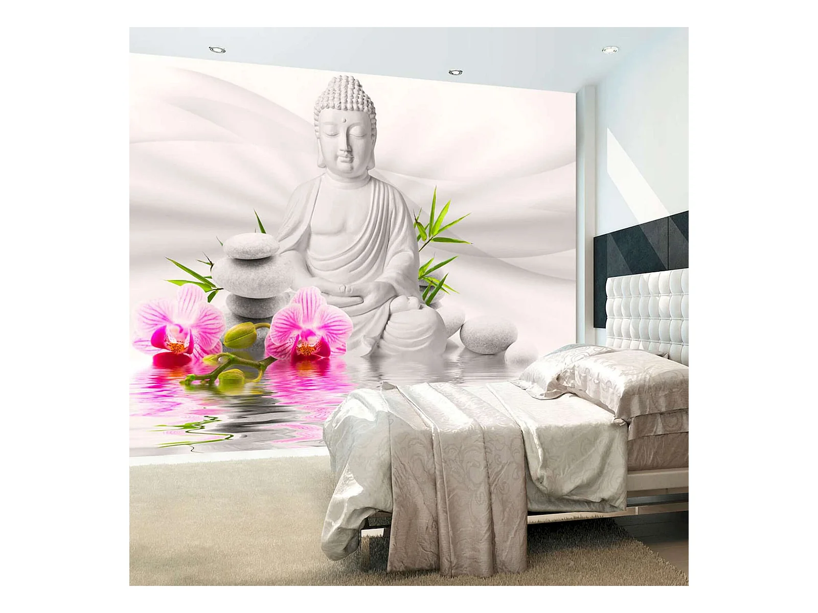 Papier peint adhésif Bouddha et orchidées - 147 x 105 cm
