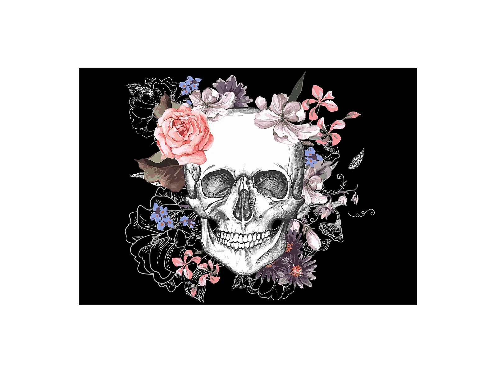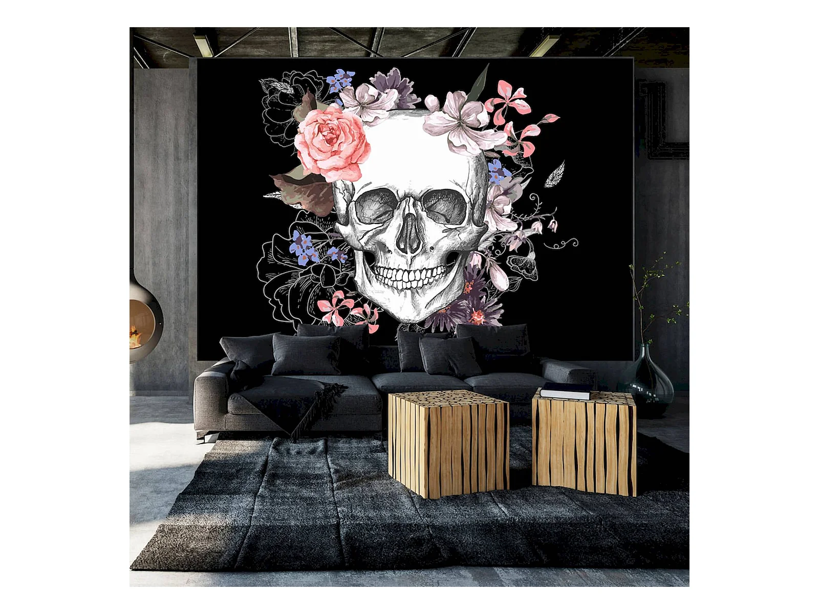 Papier peint adhésif Crâne et fleurs - 147 x 105 cm