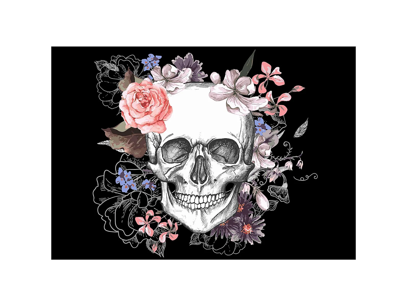 Papier peint adhésif Crâne et fleurs - 98 x 70 cm