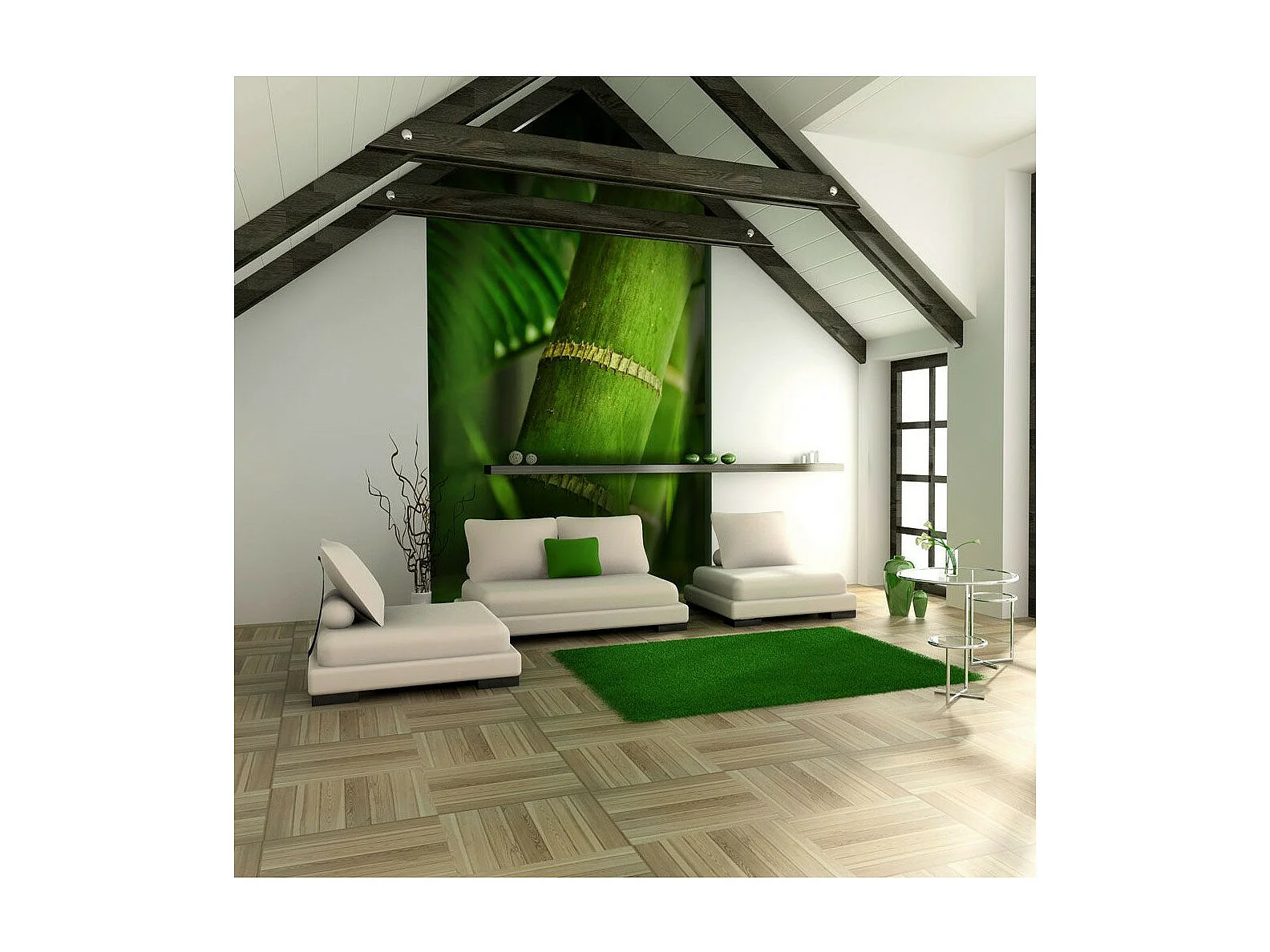 Papier Peint "Mur Vert Bambou" 154 x 200 cm