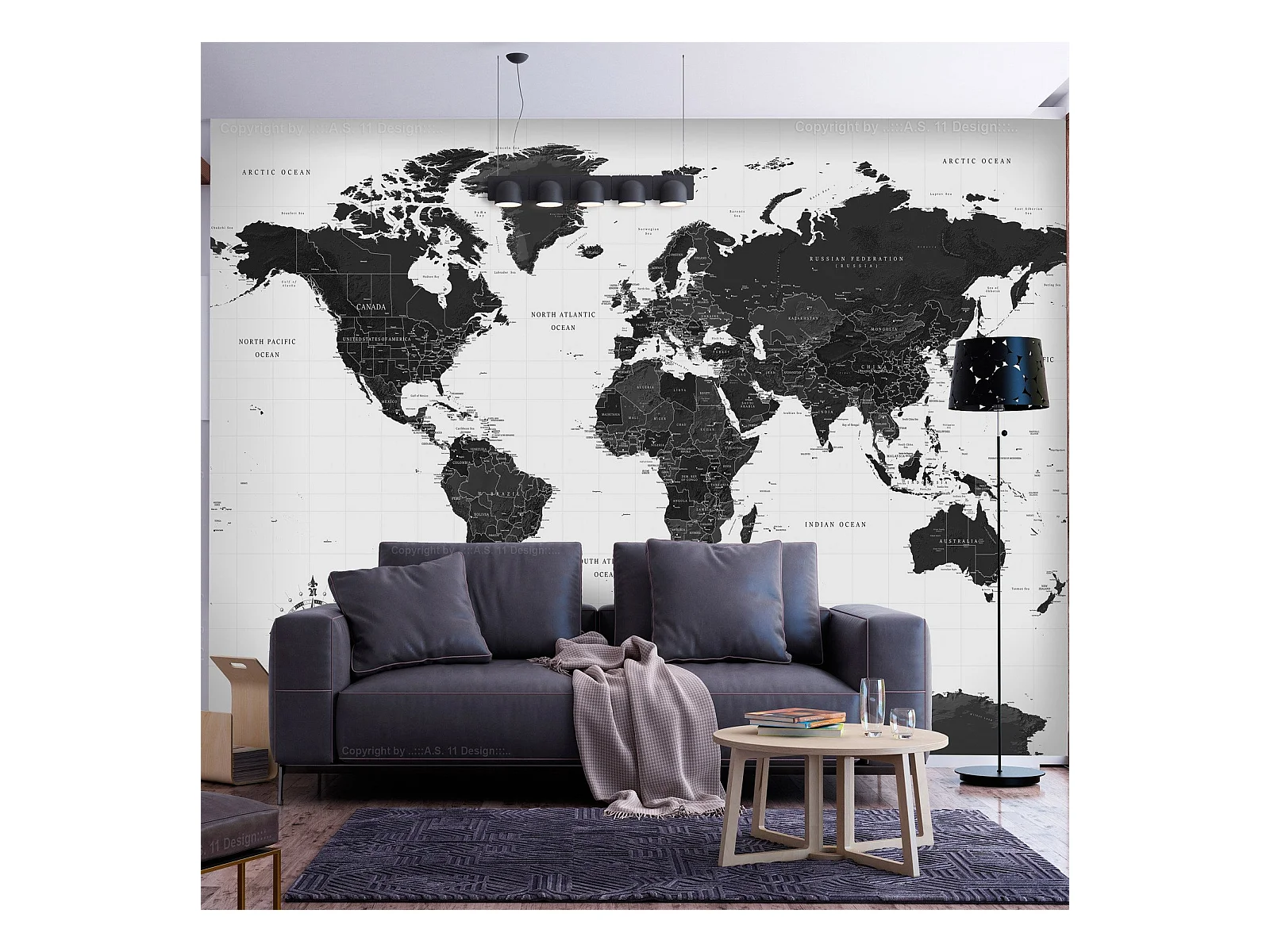 Papier peint Carte du monde en noir et blanc - 400 x 280 cm