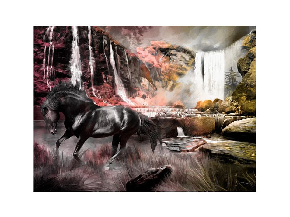 Papier Peint "Cheval Noir & Cascade" 231 x 300 cm