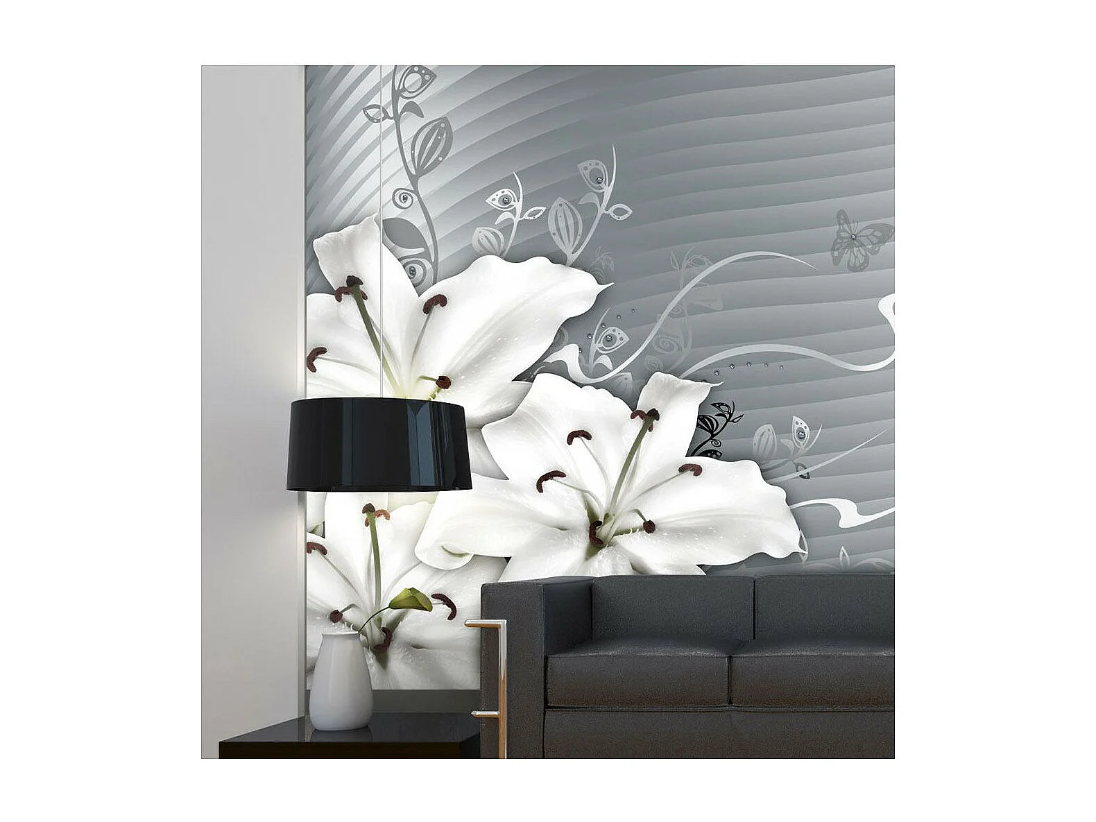 Papier Peint "Motif Floral Gris" 231 x 300 cm