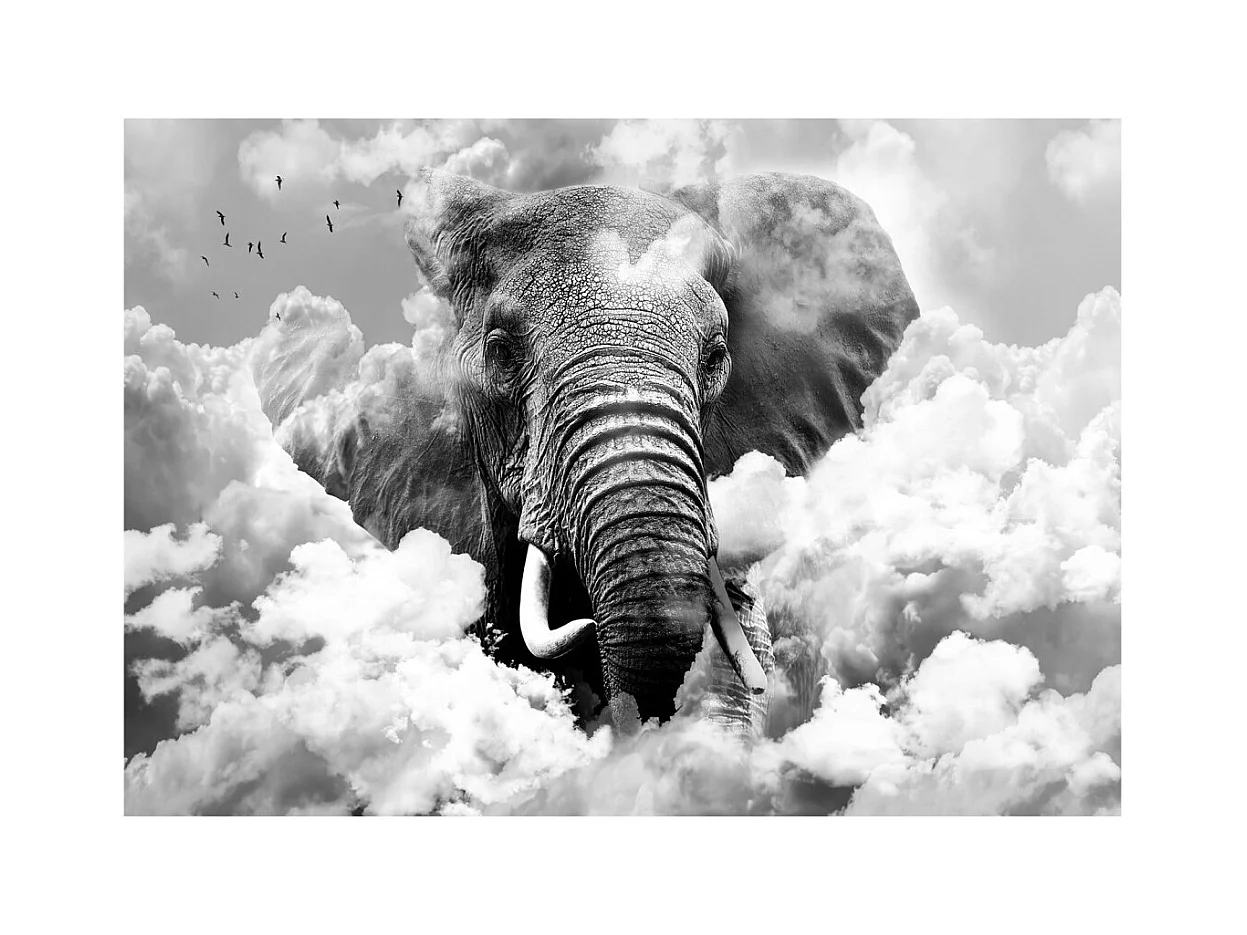 Papier Peint "Elephant in the Clouds Black & White" 140 x 200 cm