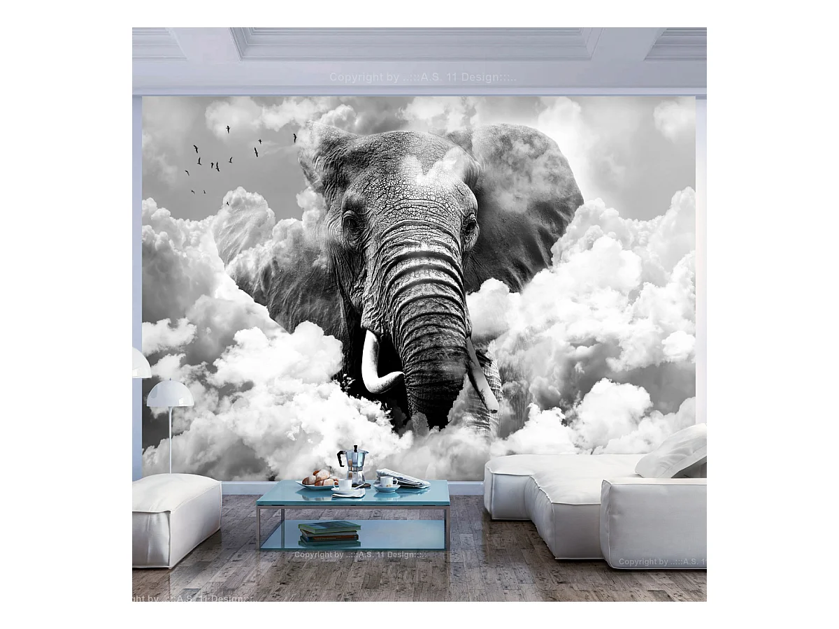 Papier Peint "Elephant in the Clouds Black & White" 245 x 350 cm