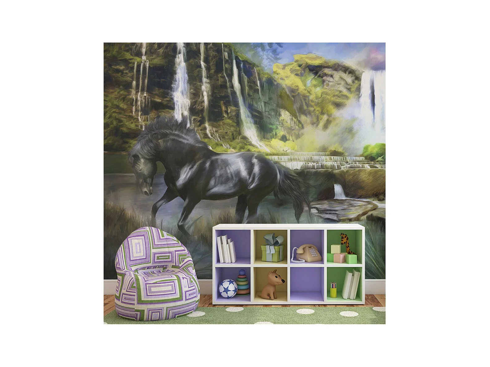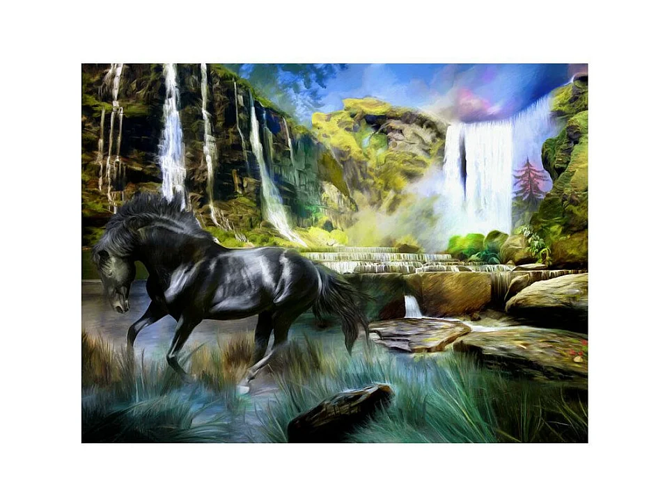 Papier Peint "Étalon Noir & Cascade" 193 x 250 cm