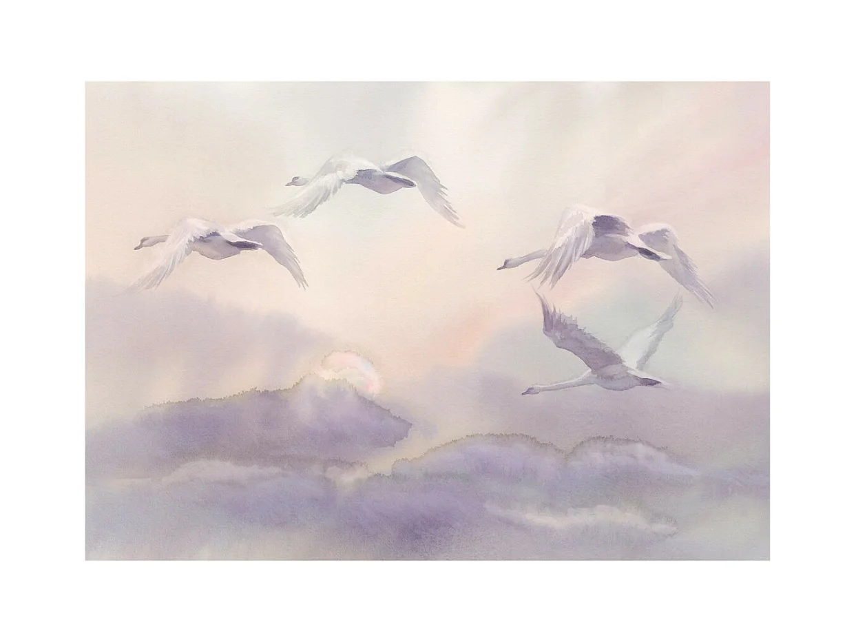 Papier Peint "Colourful Hummingbirds Purple" 210 x 300 cm