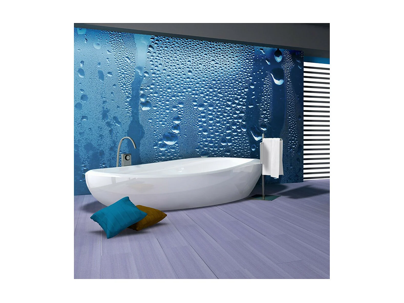 Papier Peint "Gouttes D'eau sur Verre Bleu" 309 x 400 cm