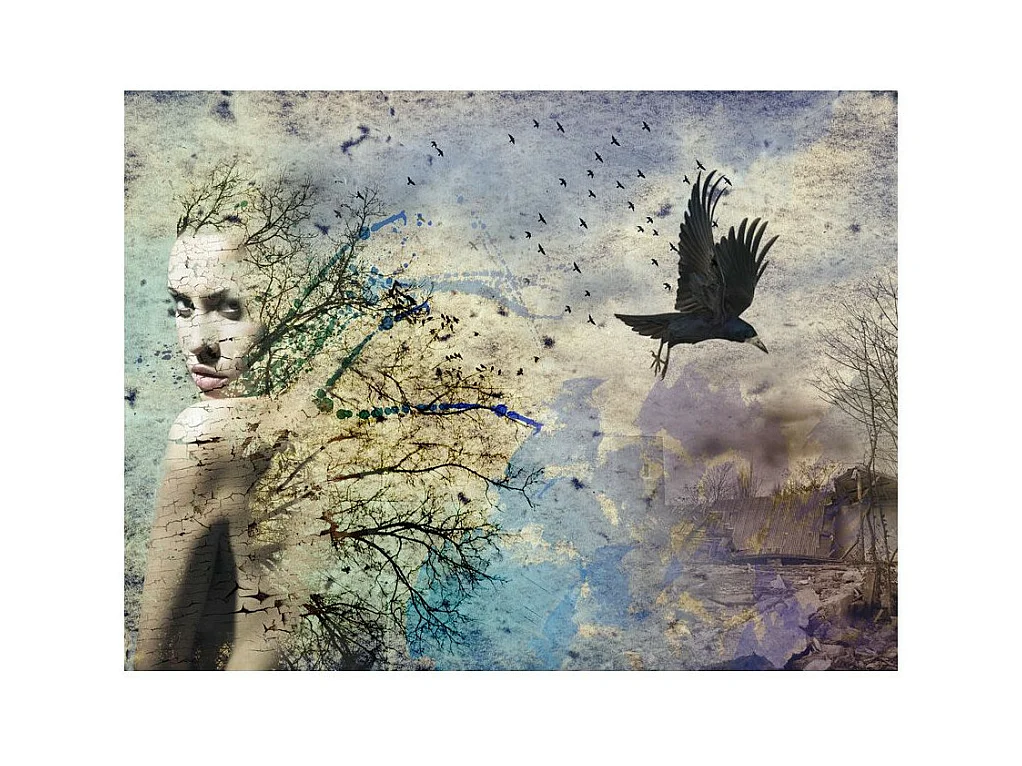 Papier Peint "Oiseau sur Branche Patchwork" 270 x 350 cm