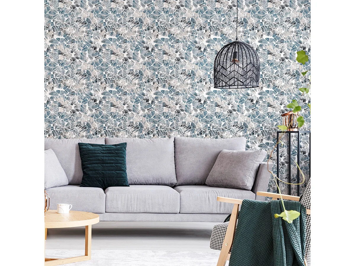 Papier peint intissé pré-encollé - SCANDINAVE PIERRE BLEUE ET GRISE - 1 rouleau de 300x60cm